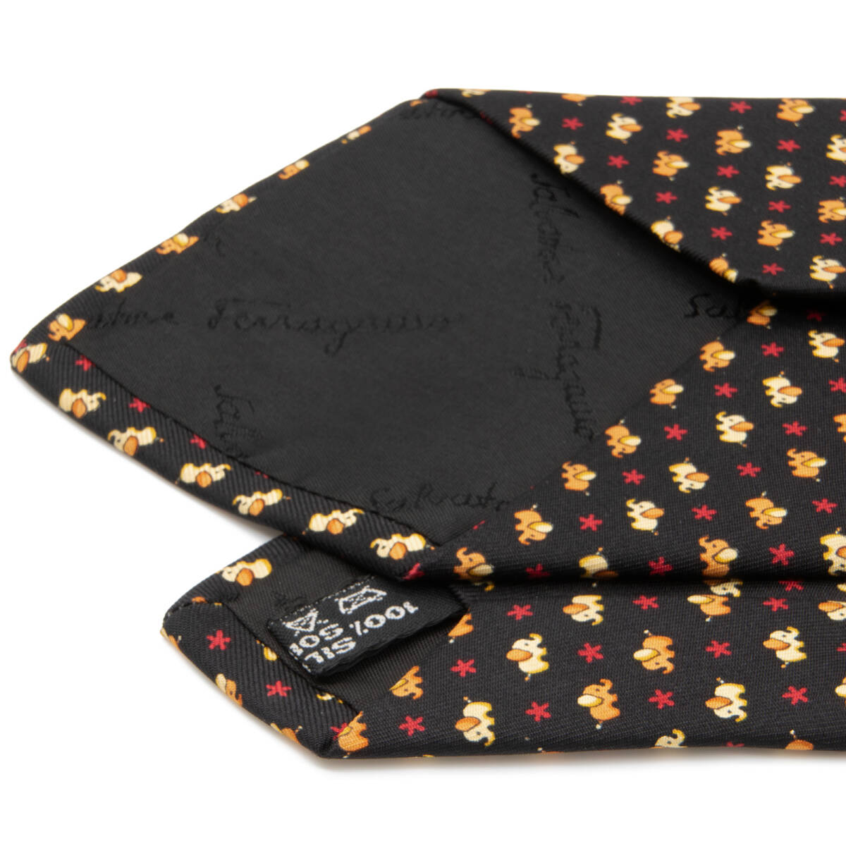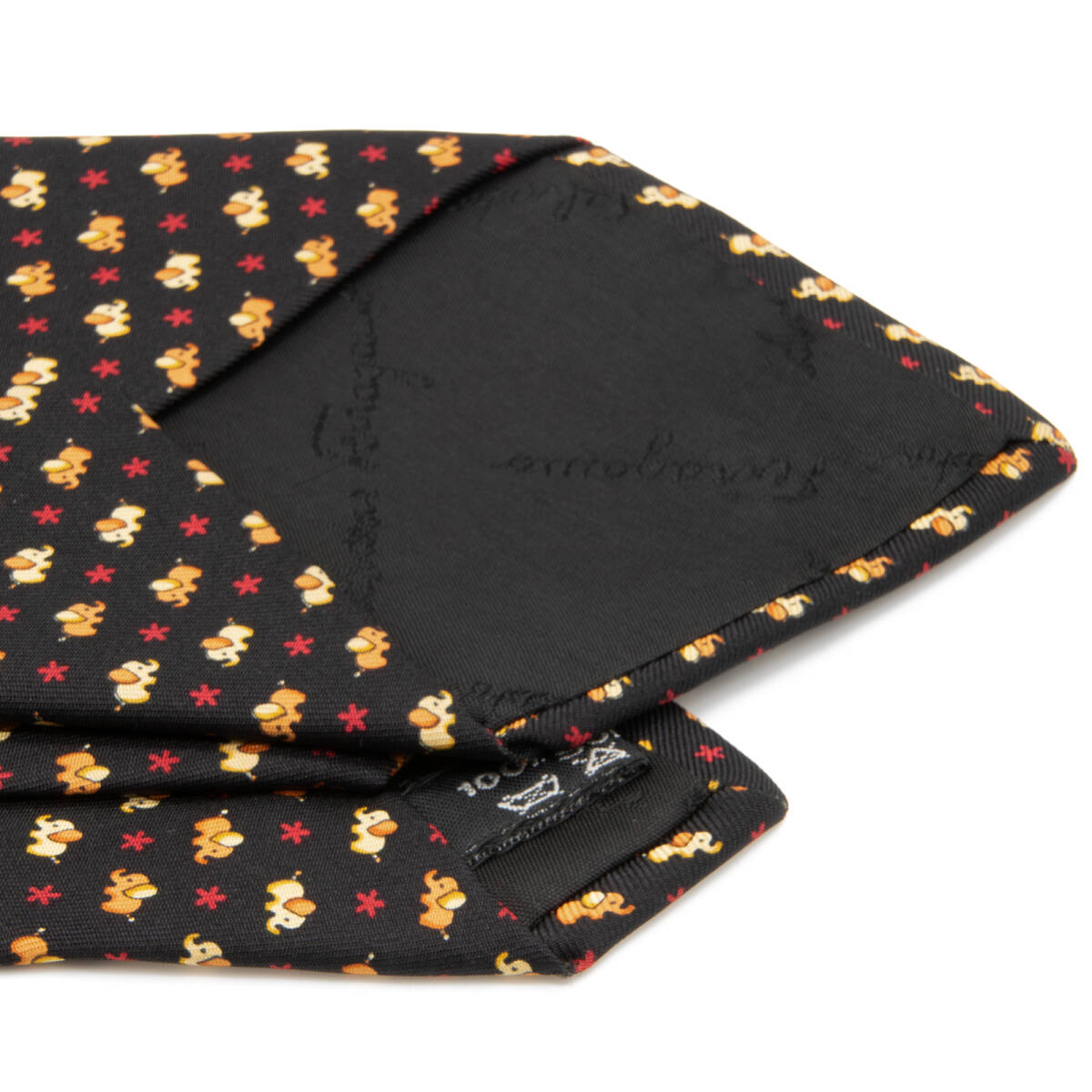 送料無料 フェラガモ ネクタイ 黒 ブラック ベージュ 茶色 赤 動物 アニマル 象 かわいい ブランド 珍しい おしゃれ イタリア製 綺麗 N355