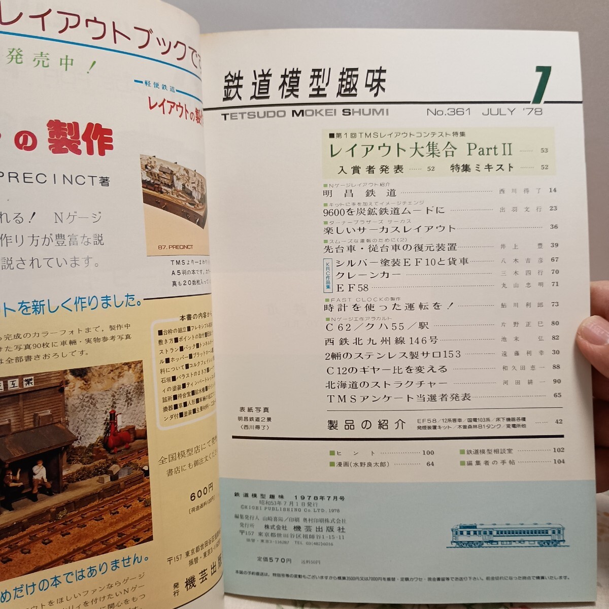 鉄道模型趣味 昭和 53年7月発行 361 Hobby of Model Railroading 大編成運転を楽しむNゲージレイアウト 9600 EF10と貨車
