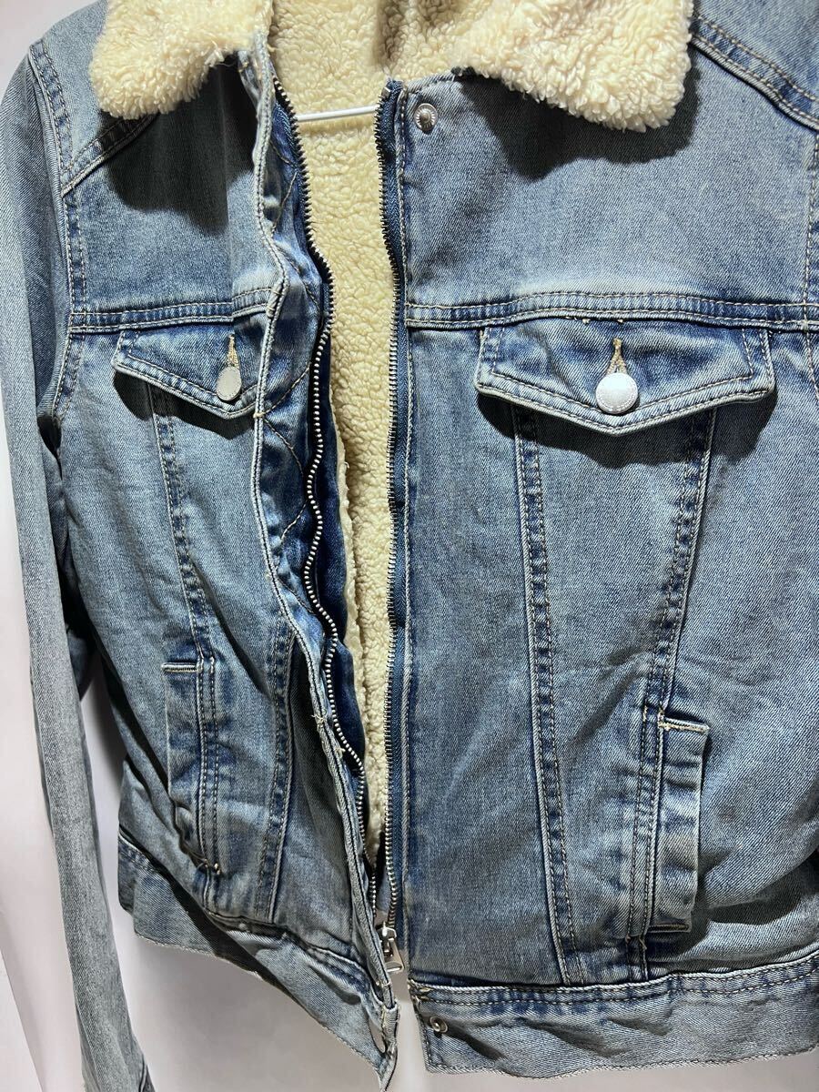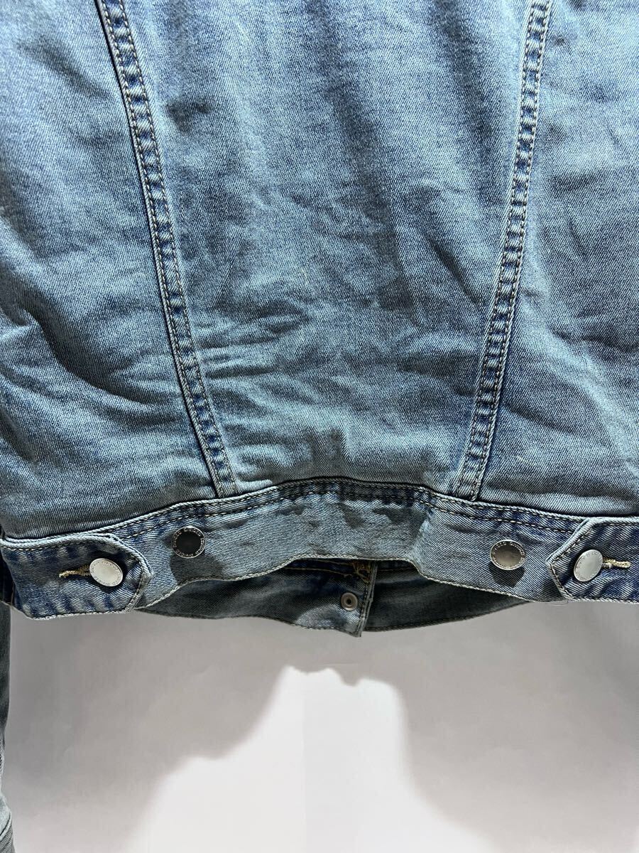 外側はデニム素材で、内側には暖かいボアが施されています。これにより、寒い季節でも快適に着用できます。ボアの汚れや状態に、目立った汚れは御座いません。