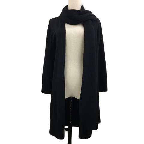 セオリー Theory カーディガン ニット ロング 無地 前開き トッパー マフラー ウール リブ 長袖 S 黒 ブラック レディース