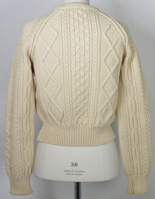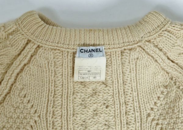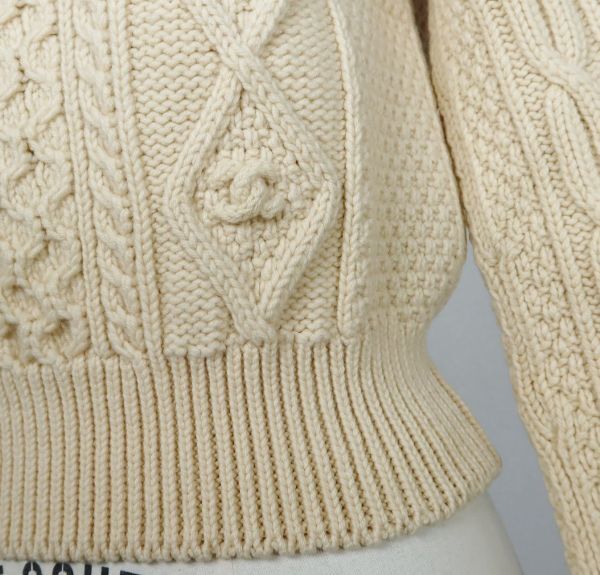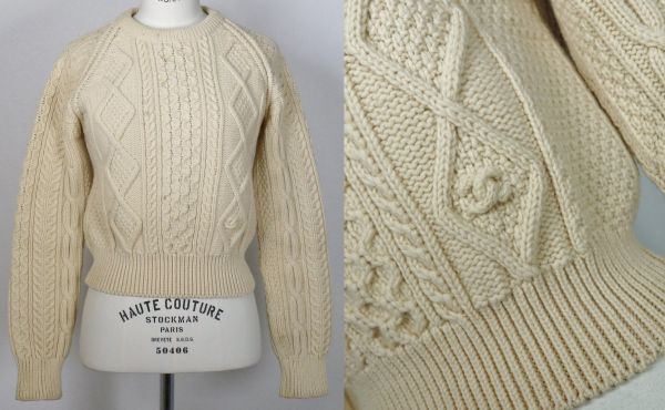 VINTAGE 96A CHANEL coco sweater size 40 シャネル ココマーク ケーブル ニット セーター <色> 画像を参考にお願いします <素材> 100%laine <サイズ> 40 <寸法> 肩幅ラグラン身幅43着丈48裄丈79(単位:㎝) <商品状態> 首回り・袖先に薄汚れ、所々に細かい汚れがございます。右袖先に補修跡がございます。着用感はございますが比較的綺麗なお品です。 <備考> 96APO800V00293、1996年秋冬商品、英国製。シャネル株式会社表記ありの国内購入品 ■支払方法 YAHOOかんたん決済で落札価格+送料をお支払いください。 ■発送詳細 佐川急便、送料全国一律900円