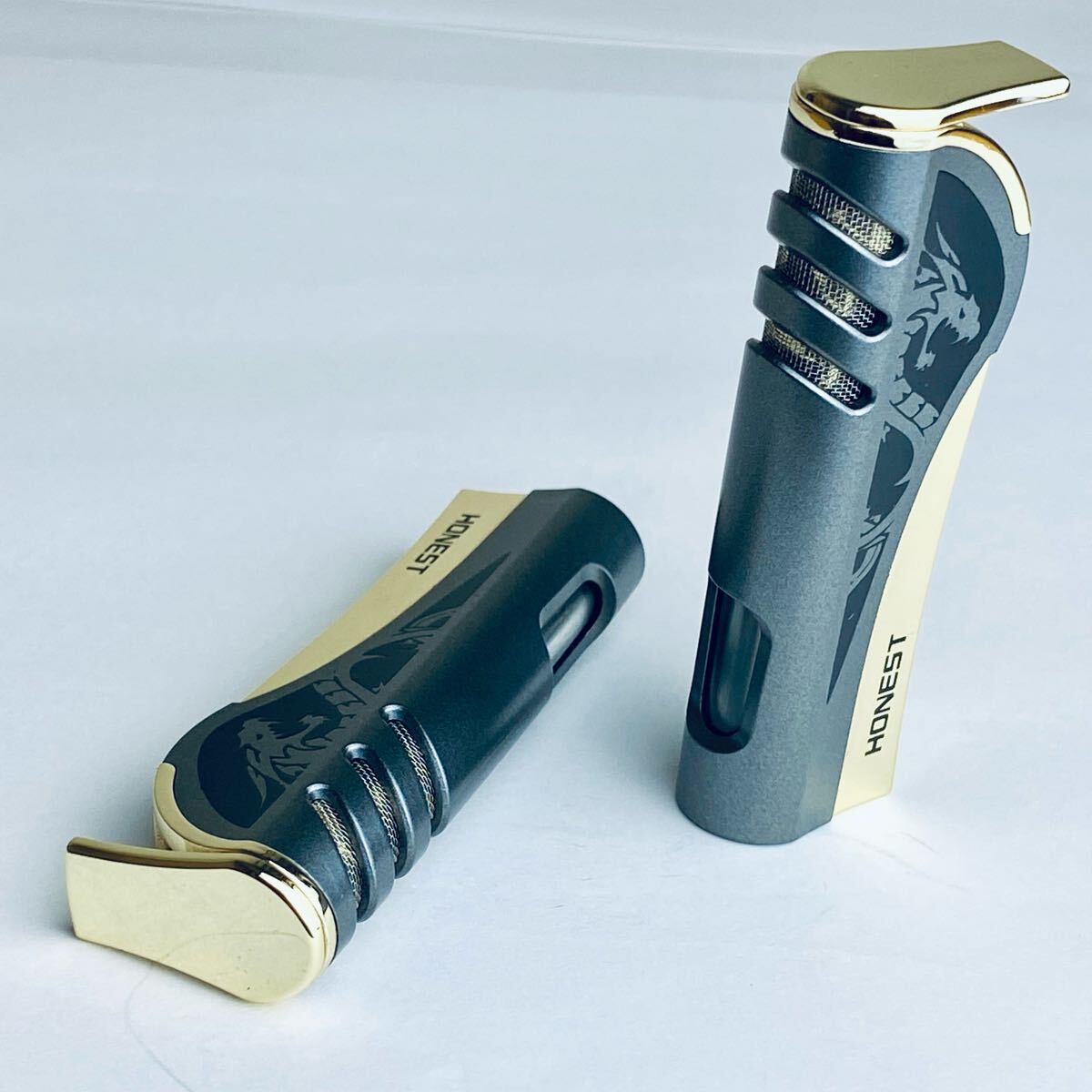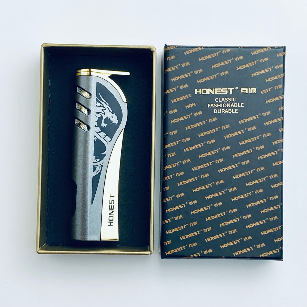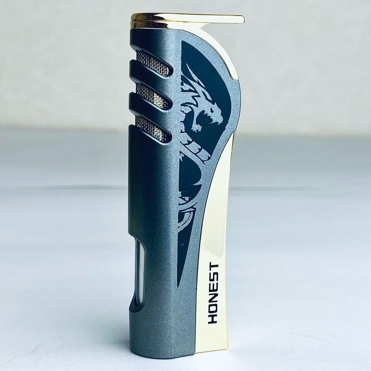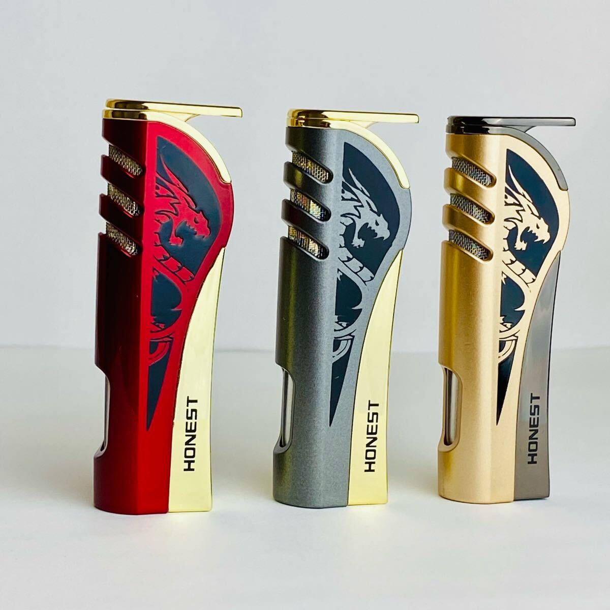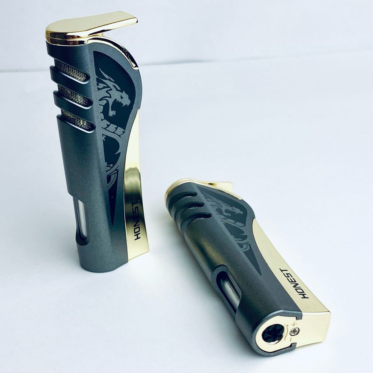 HONESTブランドのガスライター(ターボライター)は、洗練された「ドラゴン」デザインを採用し、力強くスタイリッシュな雰囲気を演出。さらに、「龍脊」造型の金属グリップがデザインのアクセントとなり、高級感と実用性を兼ね備えています。