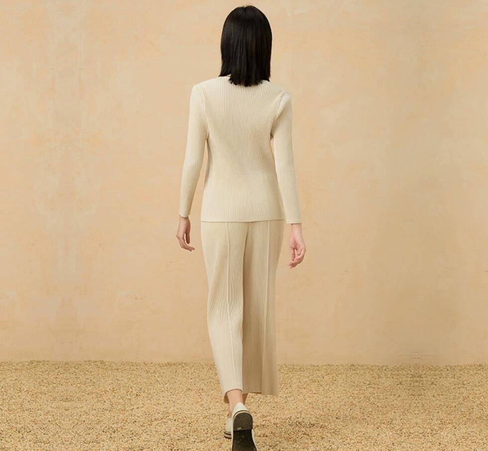 同梱1万円送料無料」レディーストップスプリーツpleats長袖ブラウスズボン2点セット弾力が肌触りドレープ性がいい大人可愛いライトピンク
