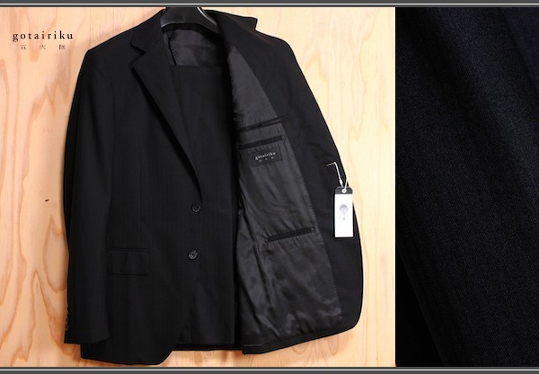 新品 オンワード樫山 五大陸/GOTAIRIKU 春夏秋 ハリ感 御幸毛織 Dry SPINNER シャドー ストライプ ストレッチ スーツ 38S/Y6/細身L黒/7.5円