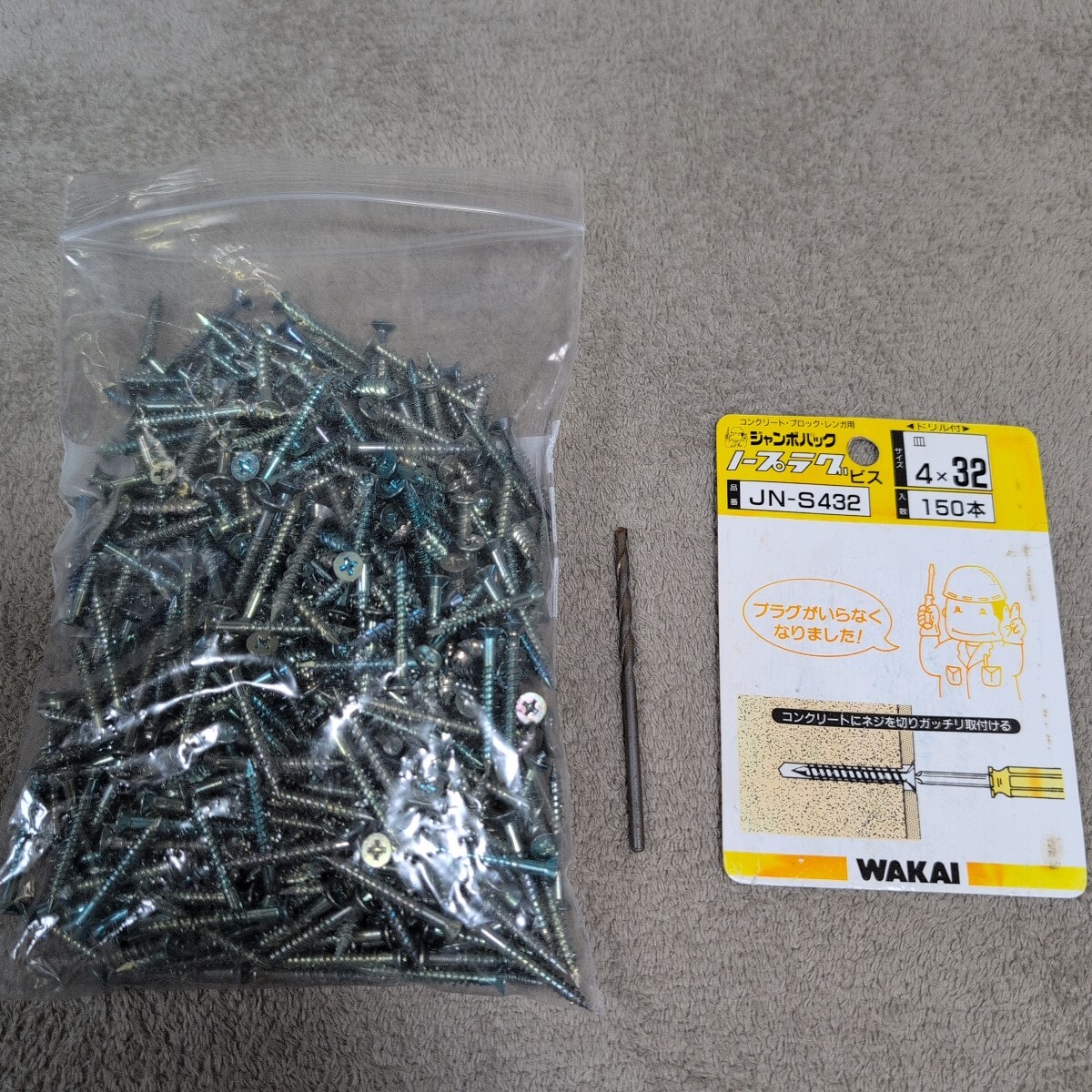 ジャンク品/長期保管品/中古品/WAKAI/若井産業/JN-S432/ノープラグビス/ブルー/皿4×32mm/1P約500本入り/下穴ドリルΦ3.5mm付き