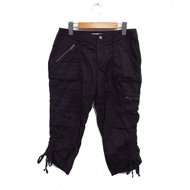 エルプラネット ELLE PLANETE カーゴ クロップド パンツ ドローストリング 無地 コットン 綿 40 ブラウン 茶 /FT44 レディース