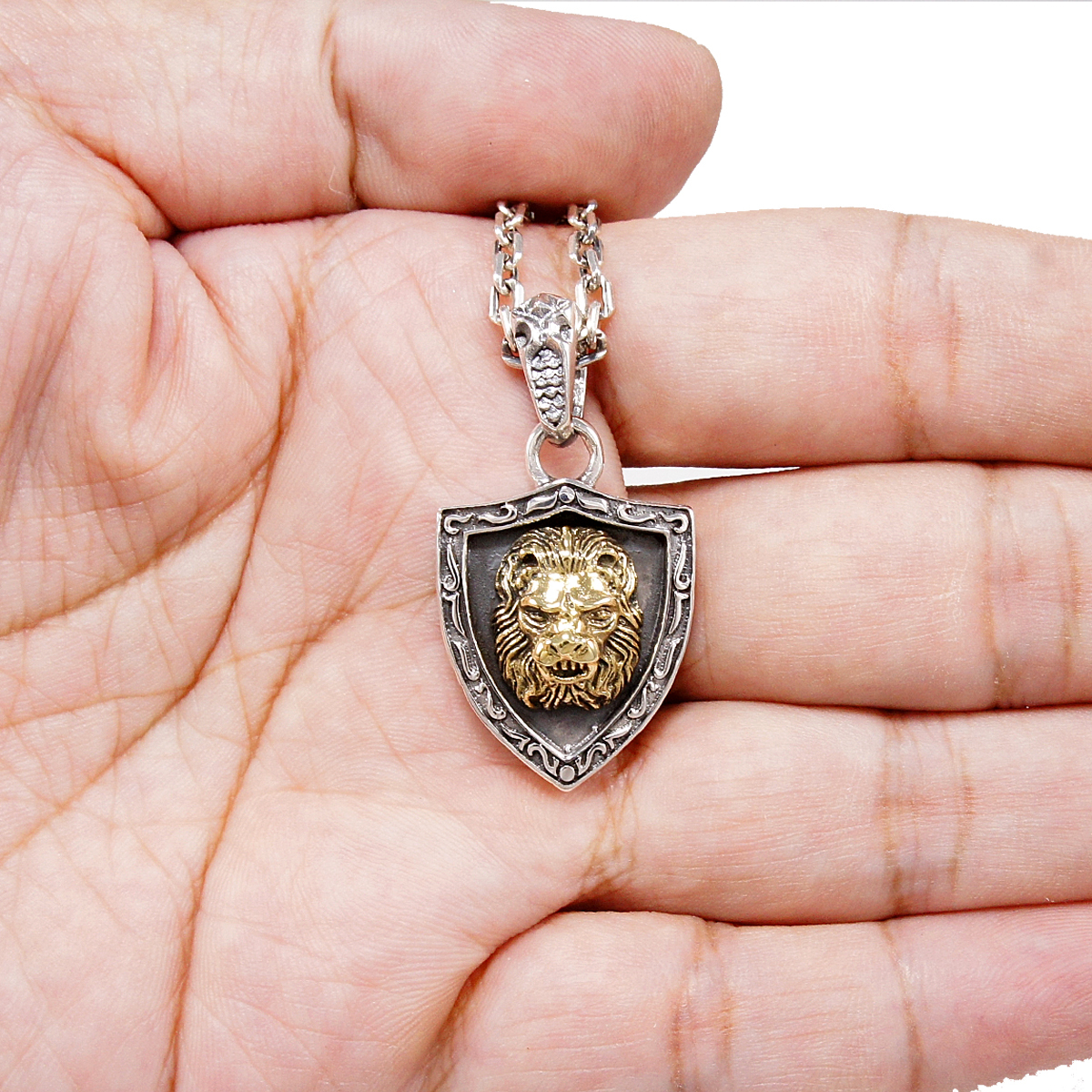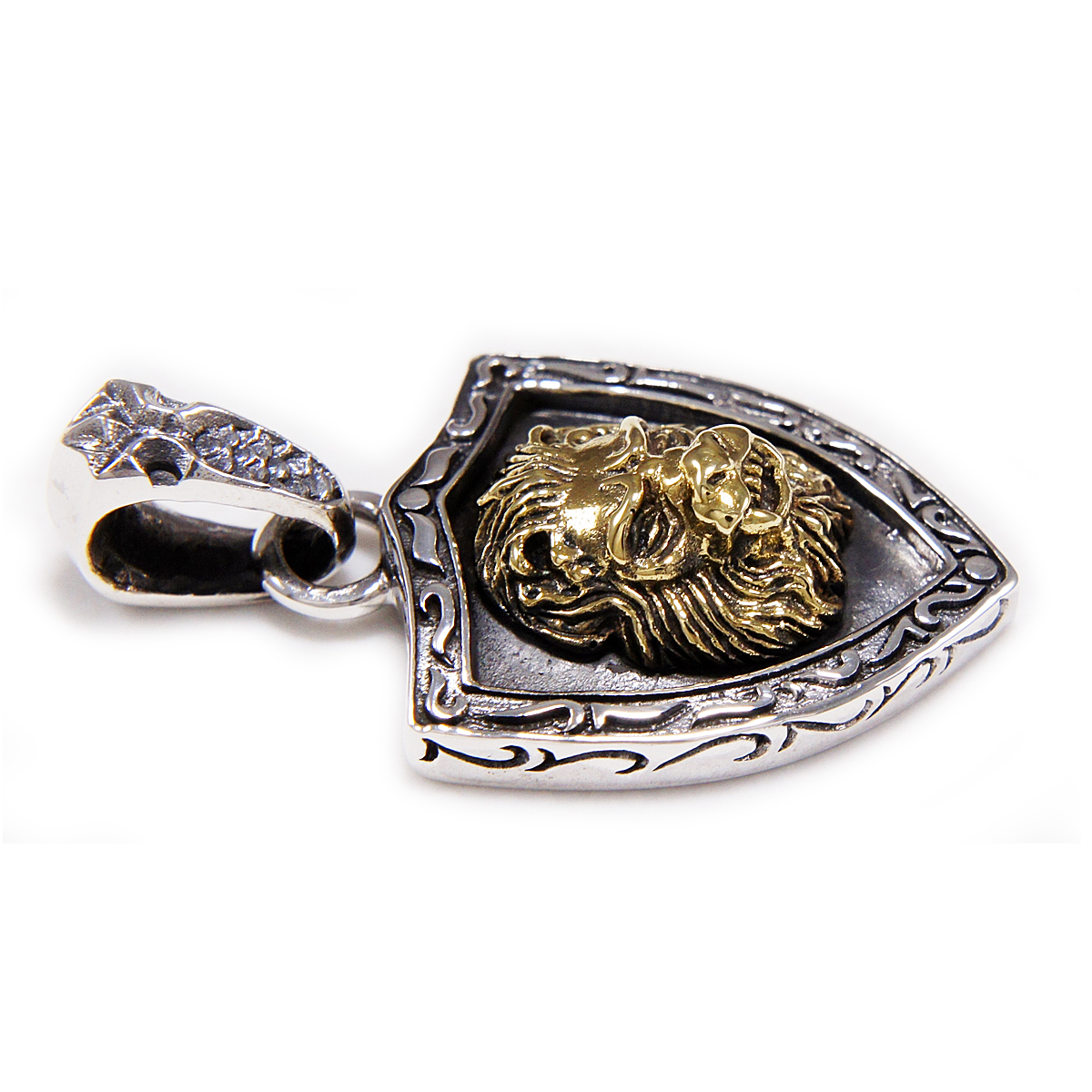 ライオンのエンブレム 真鍮 925シルバー ペンダント 925刻印ありTAN-043