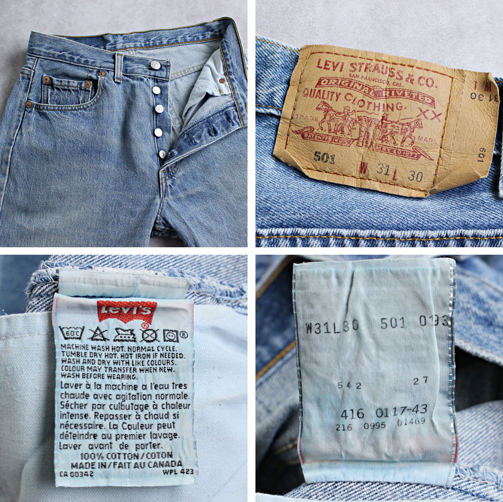 【Levi's】95年 90s リーバイス 501 希少カナダ製 ビンテージ ライトブルーインディゴ ヒゲ アタリ