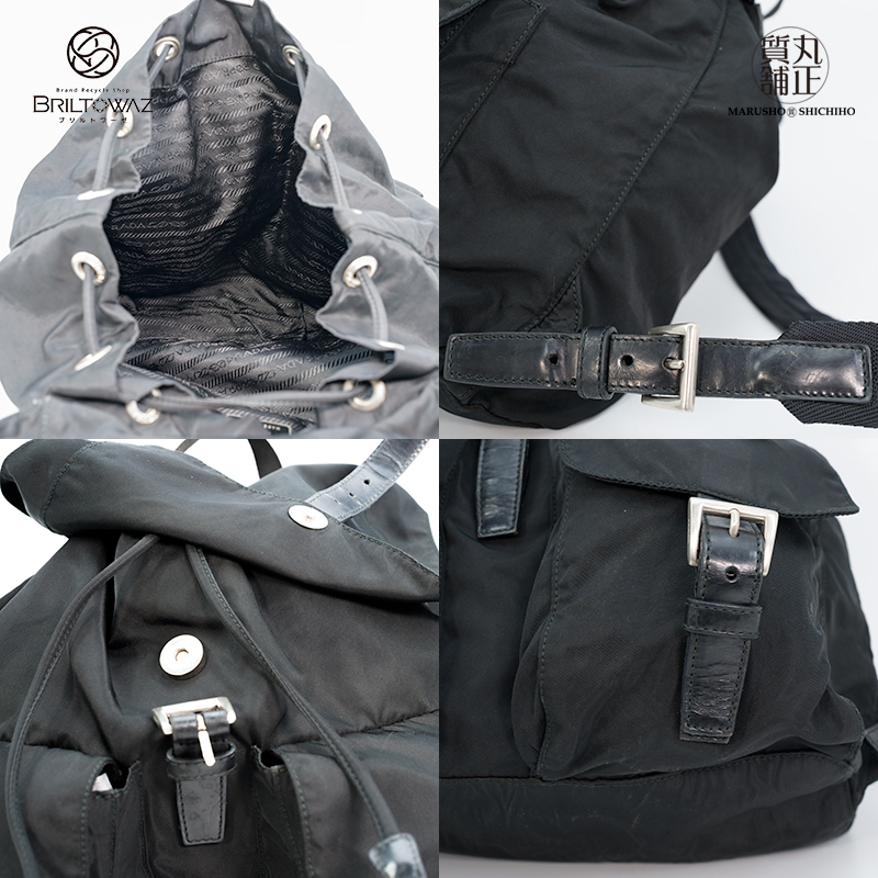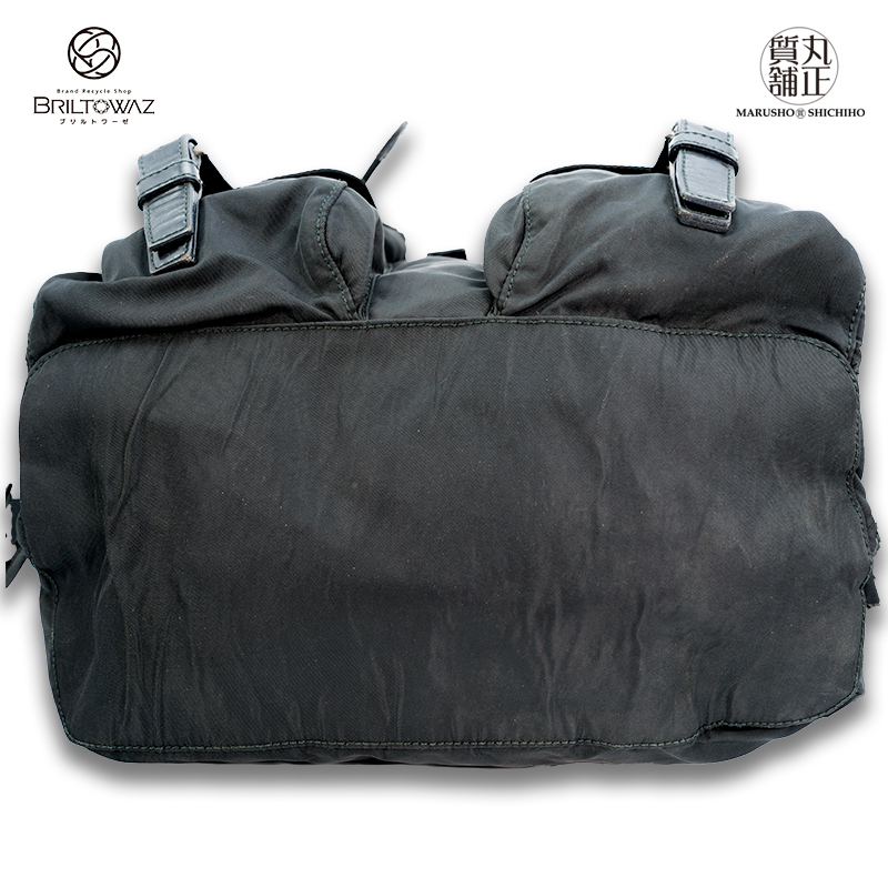| ・ナイロン表面に薄い白汚れあり   ・革表面に薄い擦れとシワあり   ・ロゴ金具に薄い擦れあり   ・金具に薄い擦れあり   ・底面にナイロン生地のシワあり   |