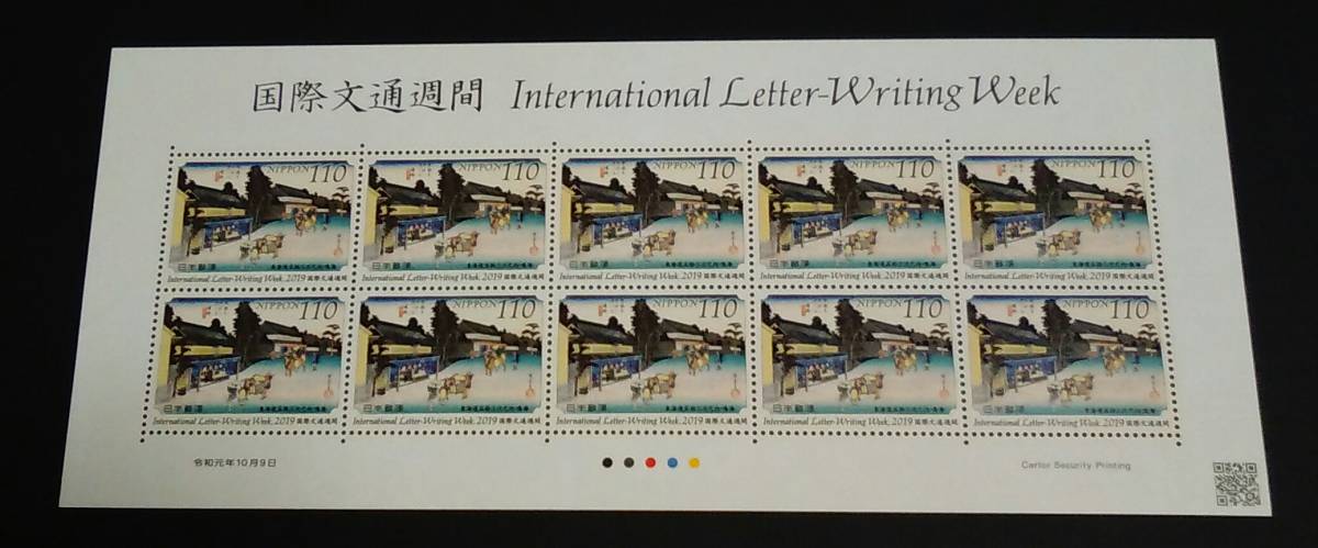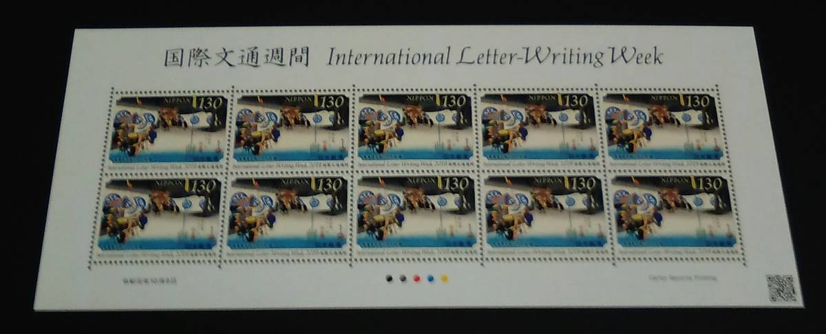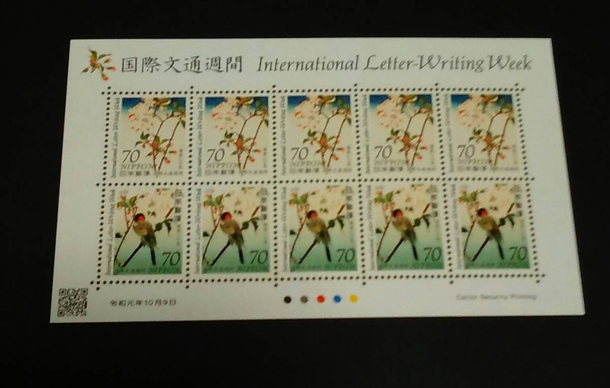 2019年・特殊切手-国際文通週間シート(7円-70円-90円-110円-130円)