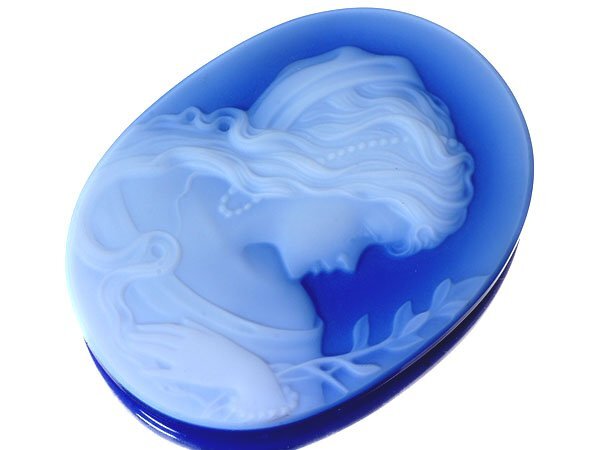 お洒落な貴婦人を繊細に彫刻で演出した、魅力的な高級ブルーストーンカメオルースです!