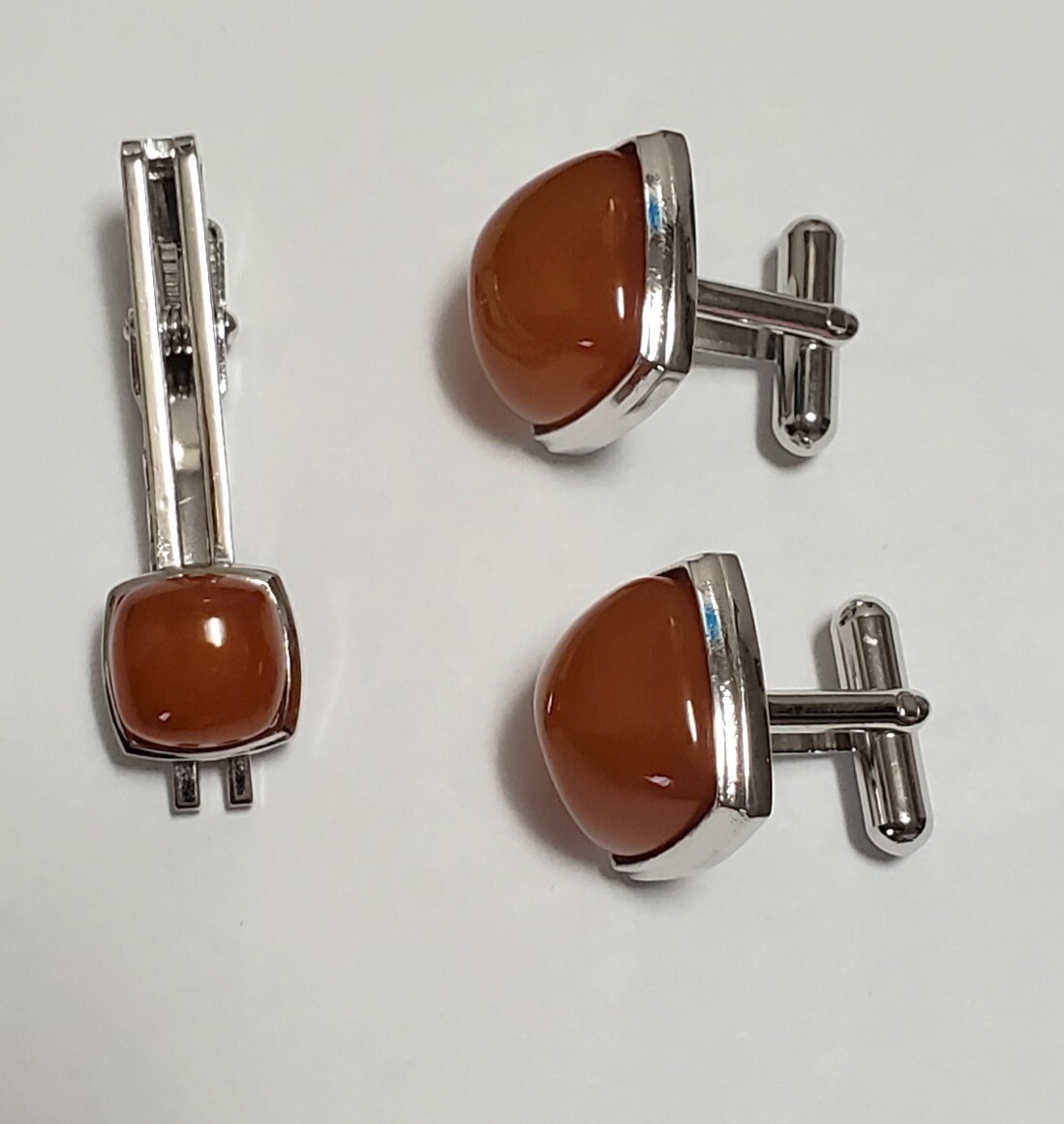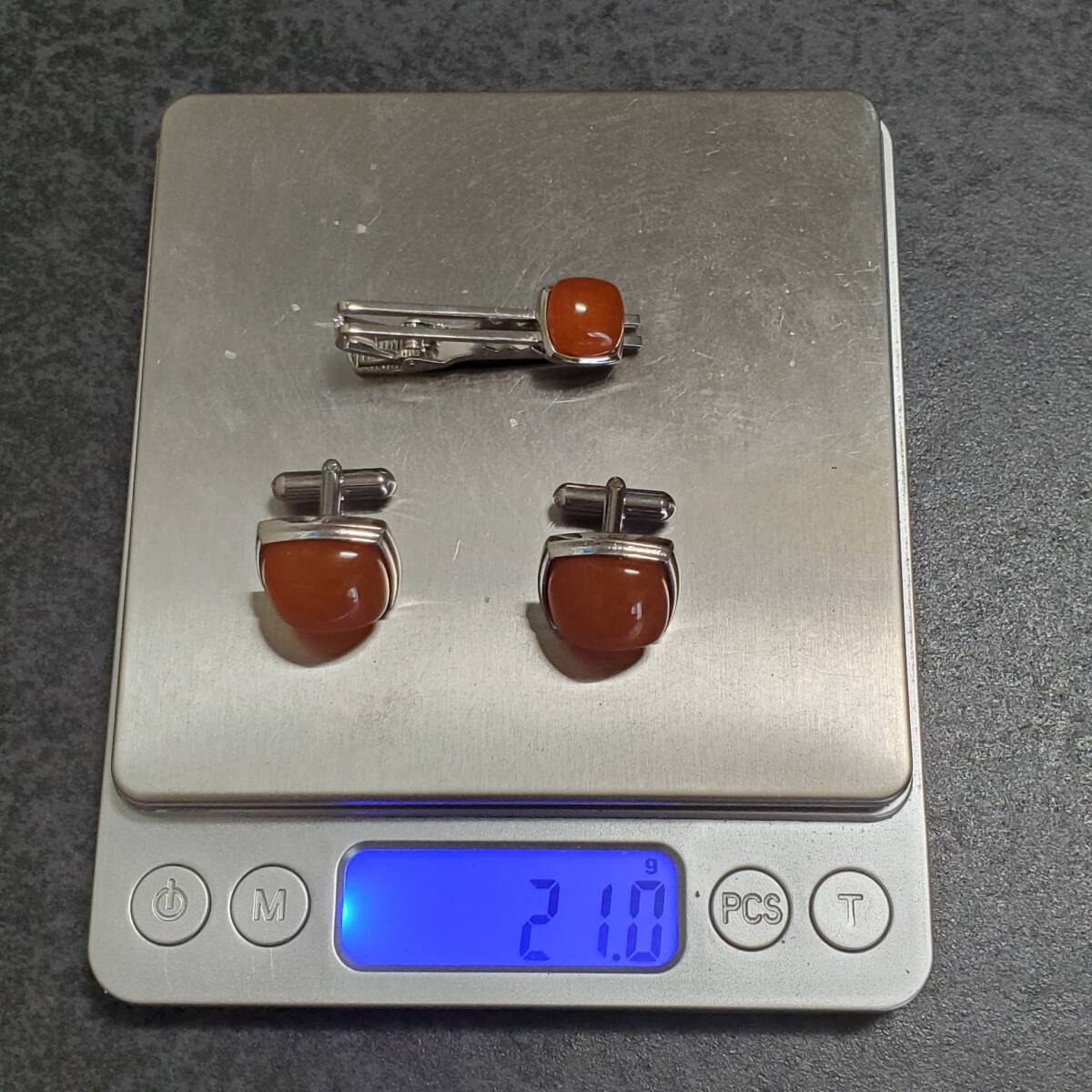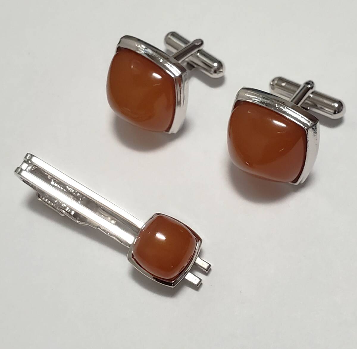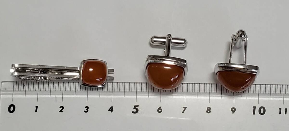 琥珀 コハク   カフスボタン&タイピン シルバーカラー メンズ アクセサリー  21g