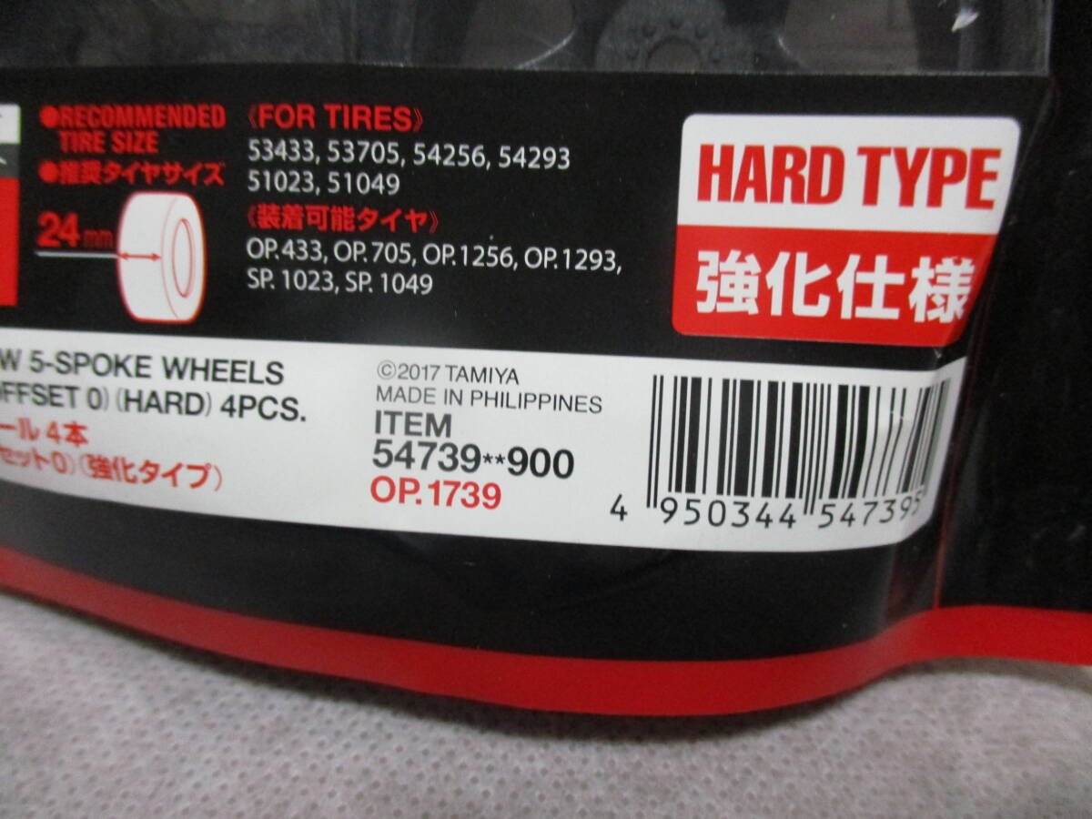 未使用未開封品 タミヤ OP-1739 5本スポークホイール 4本(24mm幅・オフセット0)(強化タイプ) 54739、になります。