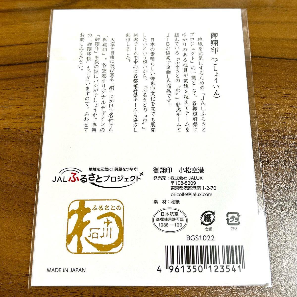 こちらは日本各地のJALグループ便就航空港にて限定販売されております「御翔印 小松空港」です。