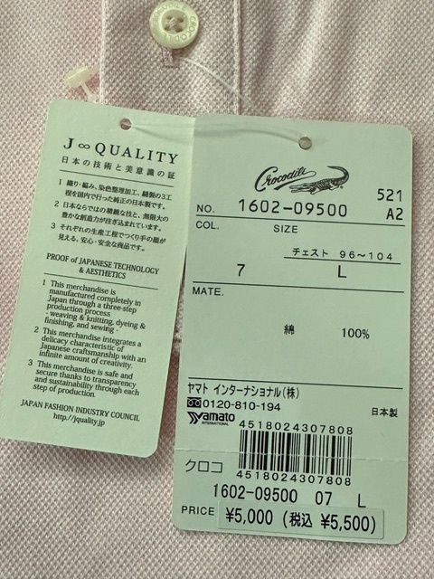 クロコダイルの綿100% メンズ半袖ポロシャツ 新品未使用品です。