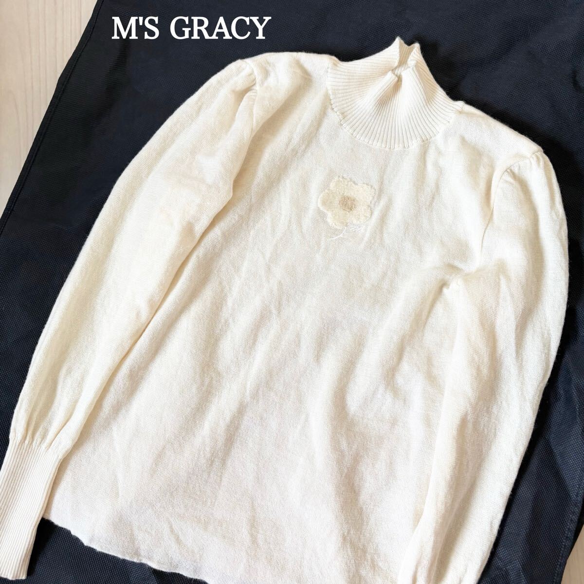 M'S GRACY フラワーモチーフ ハイネックニット セーター エムズグレイシー