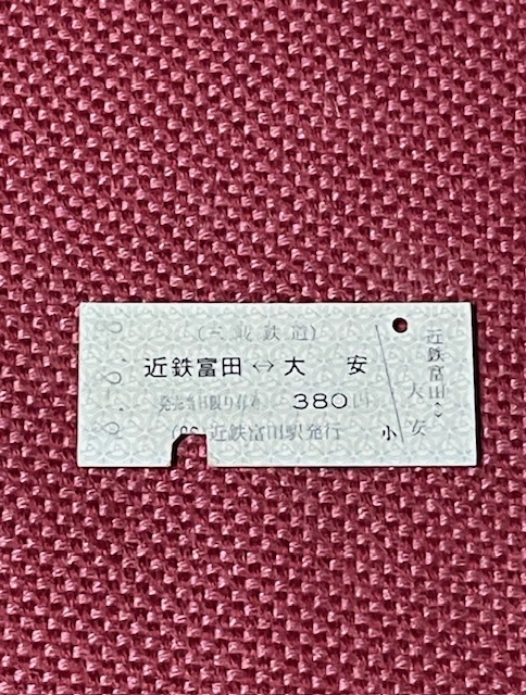 三岐鉄道 近鉄富田大安 硬券 入場券 (管理番号99-94)