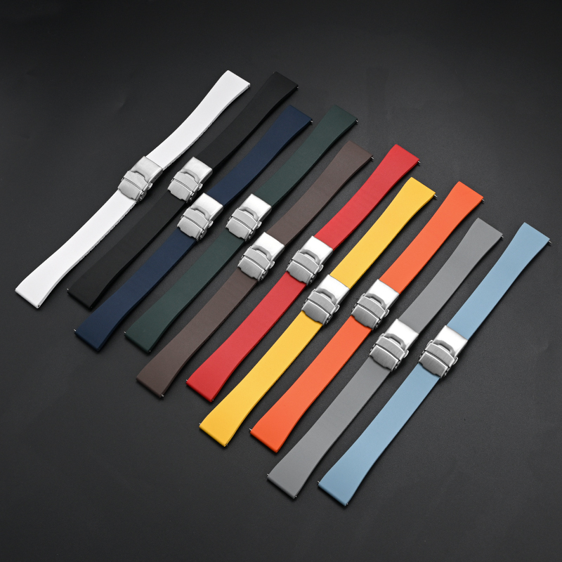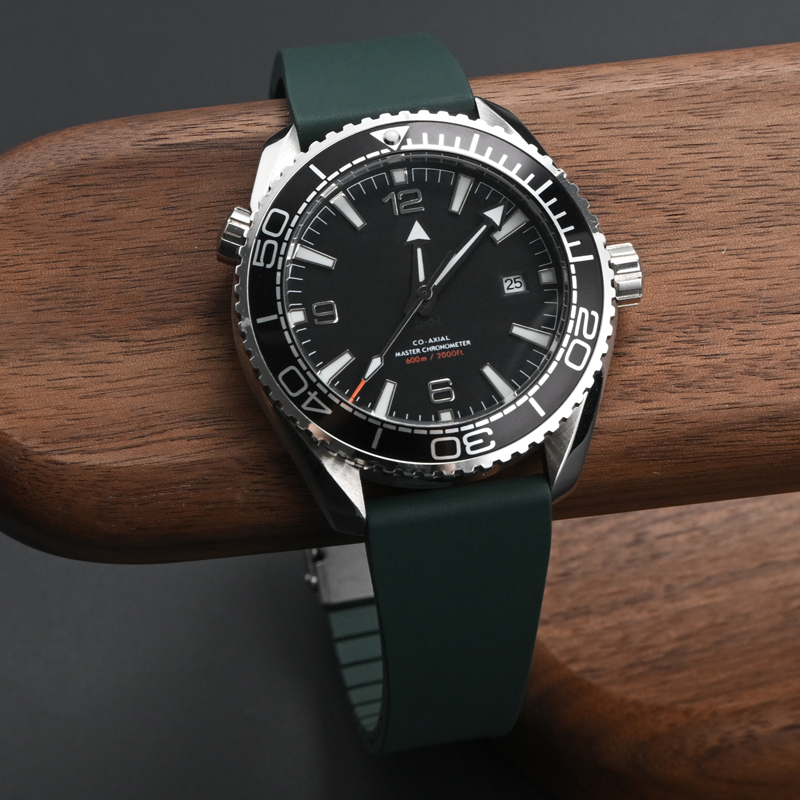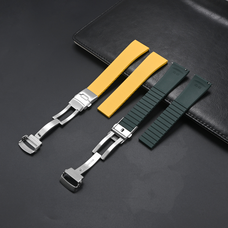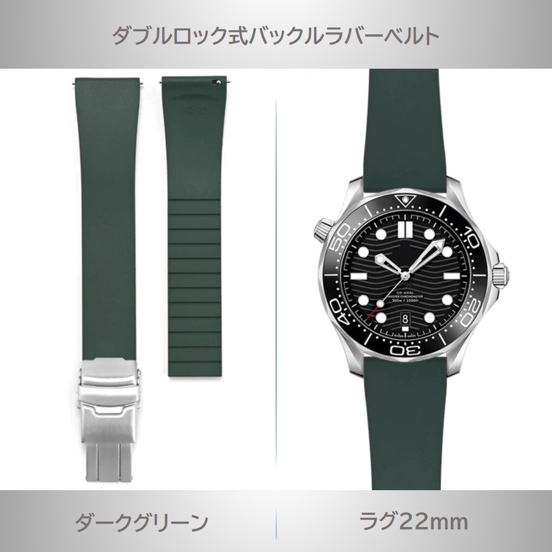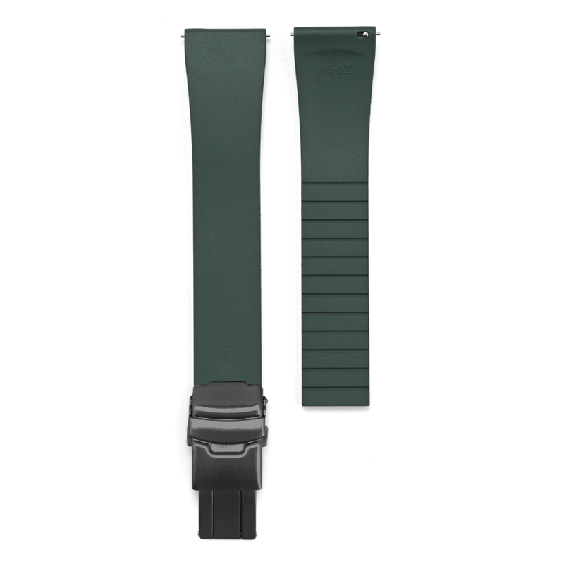 ダブルロック式バックル付きラバーベルト 22mm ダークグリーン