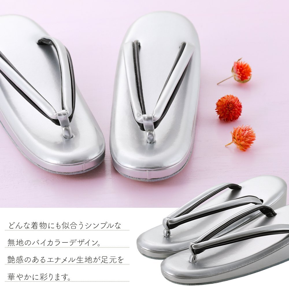 シンプルなデザインでどんな柄のお着物にも合わせやすいエナメル草履です
