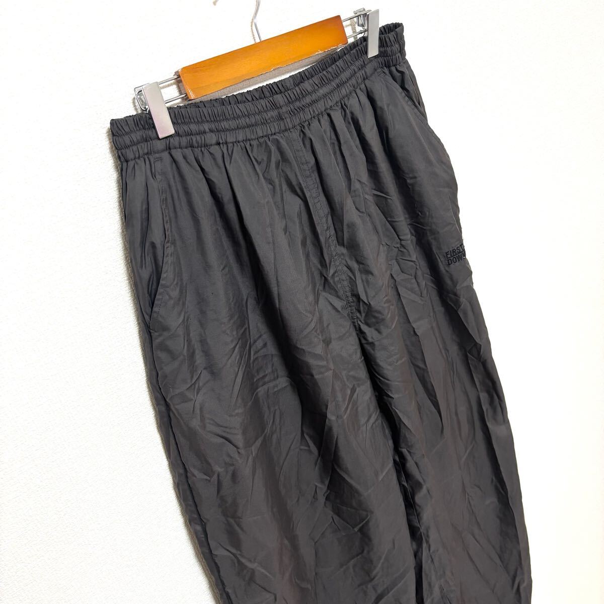 FIRSTDOWNのジャージパンツです。1着あれば、スポーツやアウトドアなどレジャー、柔らかな穿き心地で、リラックスした部屋着などにも大活躍です。スレややぶれ見られますが、レジャーなどには気にせず着用できます。