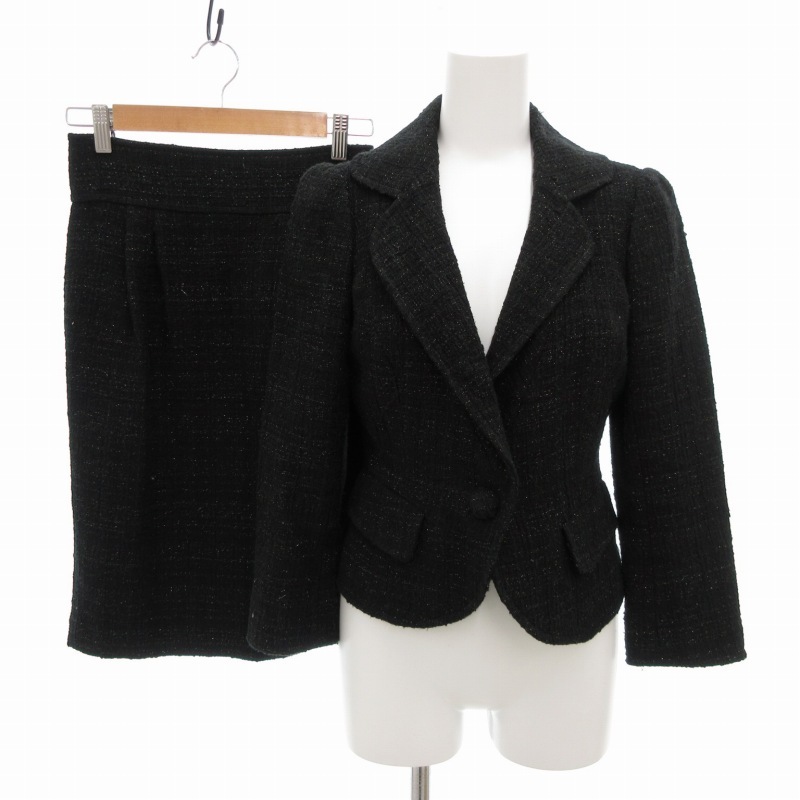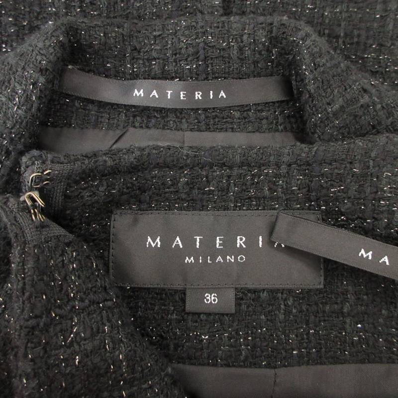 マテリア MATERIA セットアップ ジャケット 総裏 1B タイトスカート ひざ丈 スリット ラメ加工 36 38 S-M 黒 ブラック /FT レディース