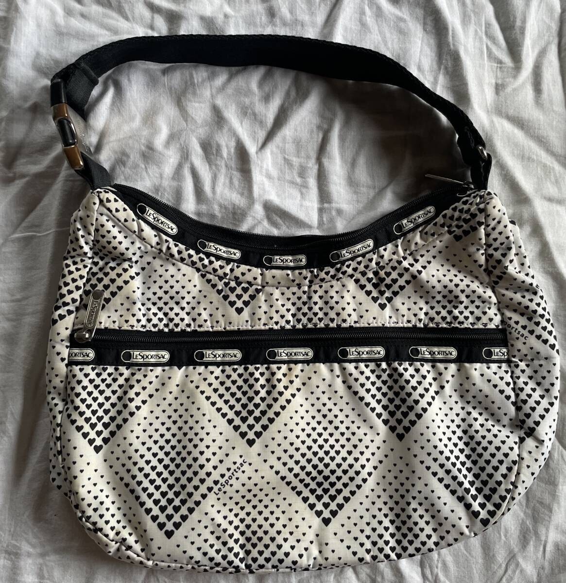 レスポートサック ポーチ ハンドバッグ モノクロ ハート