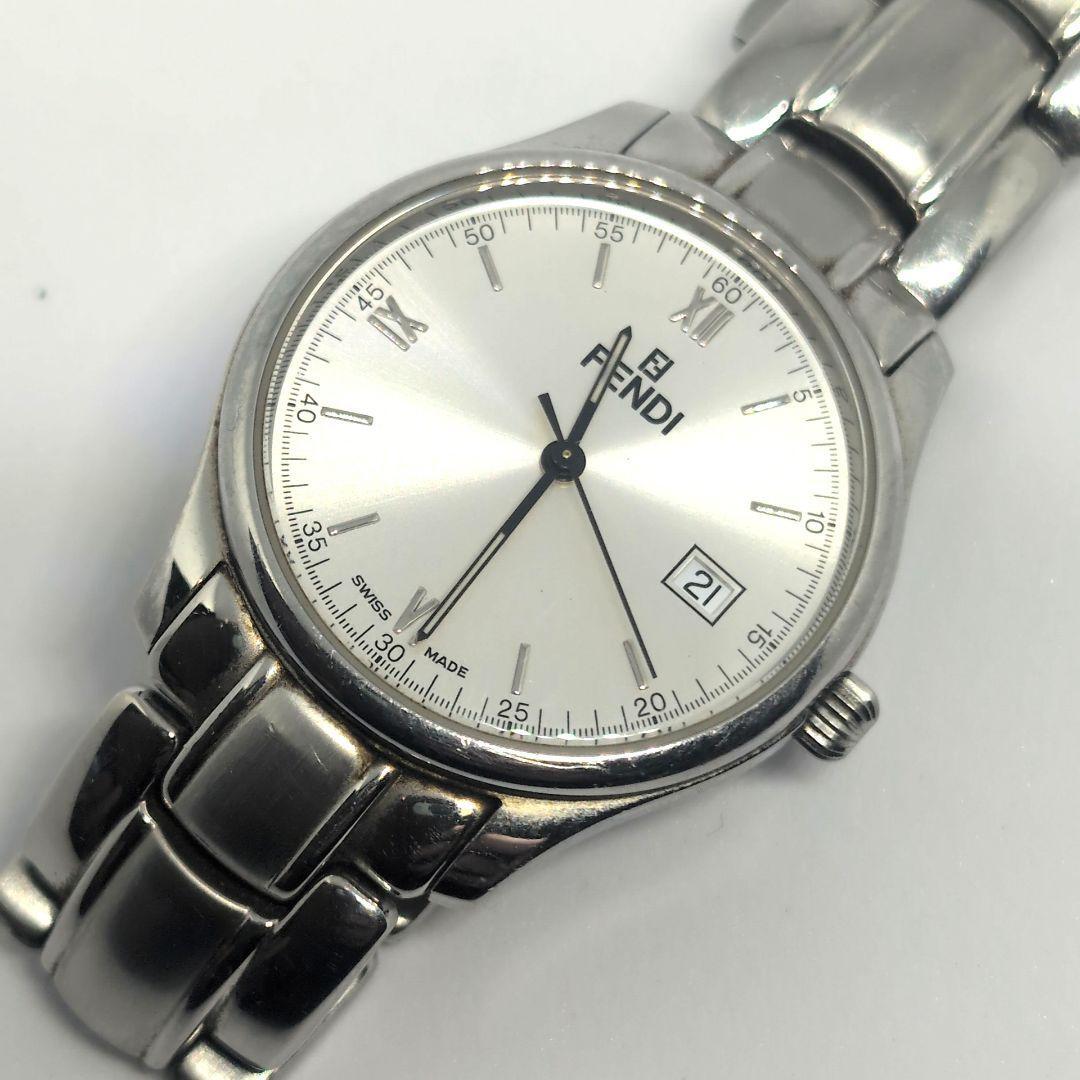 【正規稼働】フェンディQZ 210G 045-163 シルバー文字盤 デイト メンズ 腕時計