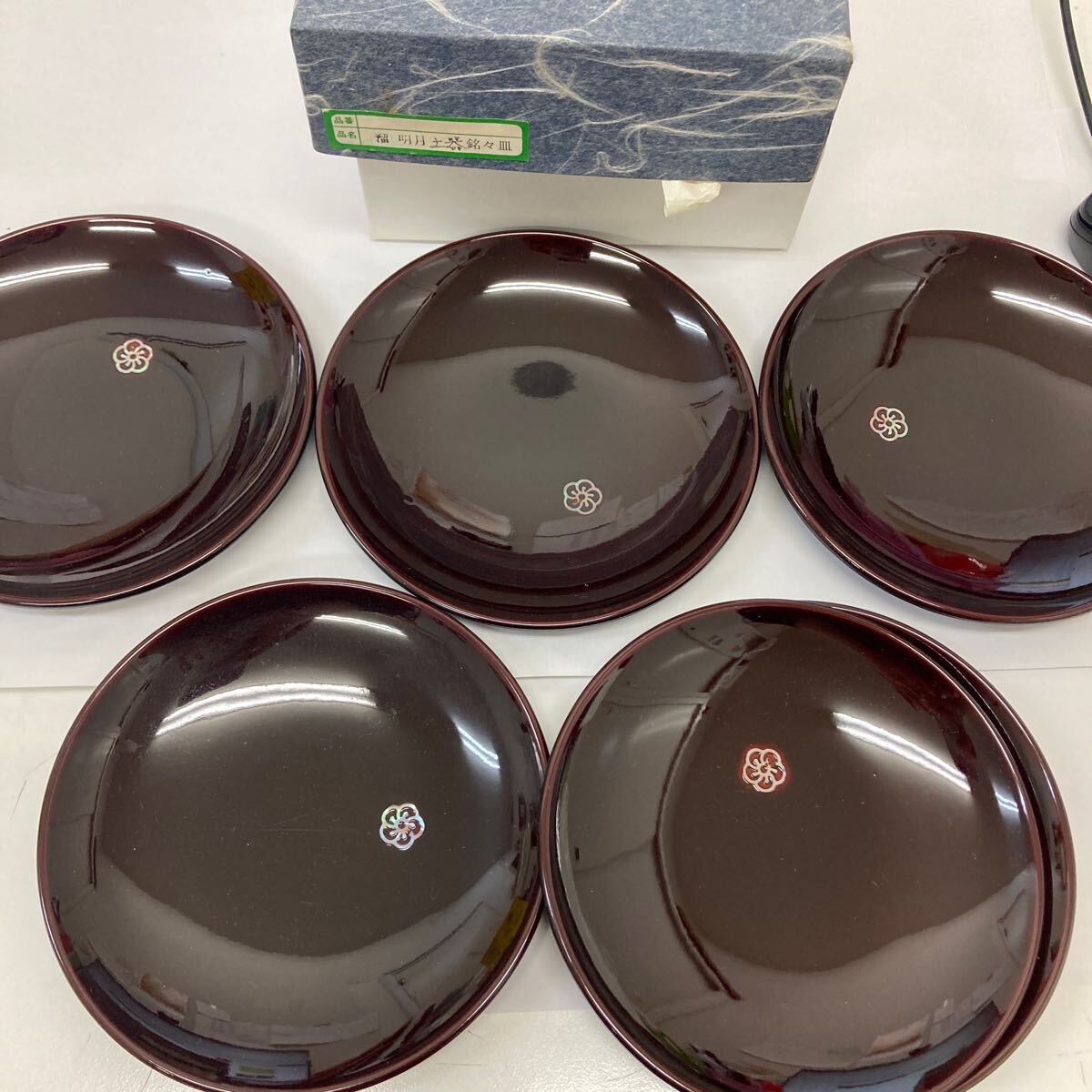 37782 0323Y 未使用 一口皿 明月 5客セット 漆器 保管品