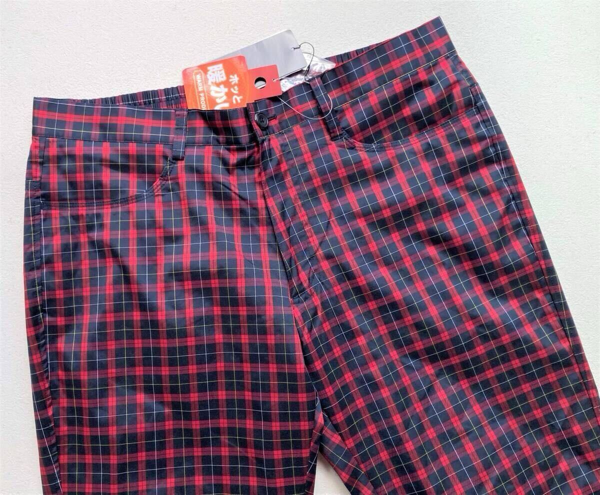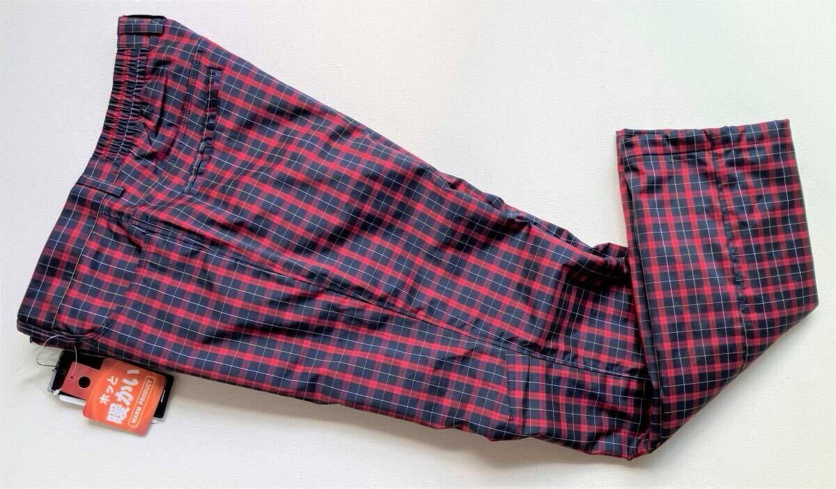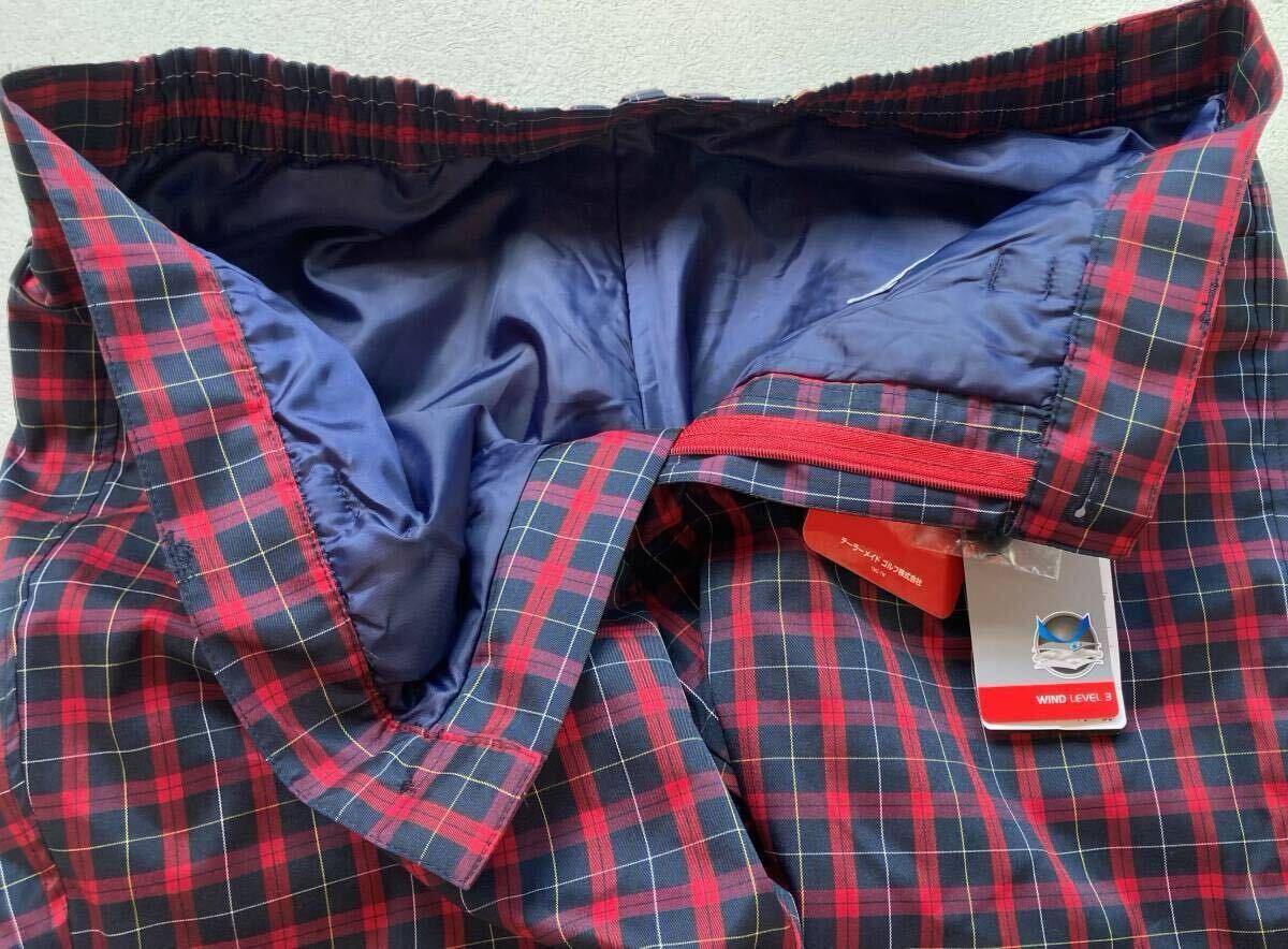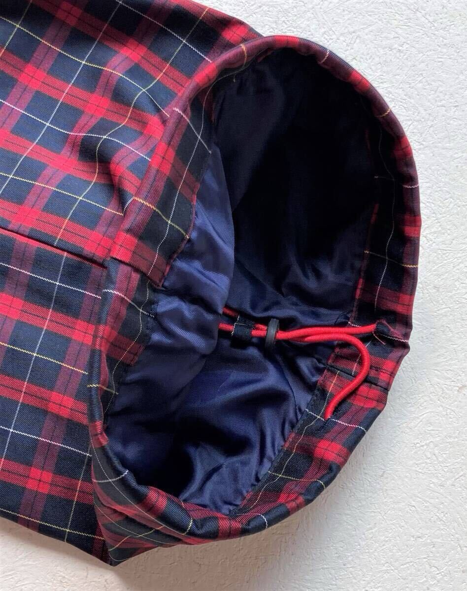 ◎レッド×ネイビーのチェック柄、裾はドローコードで調節可、これからの寒いシーズンにぴったり。