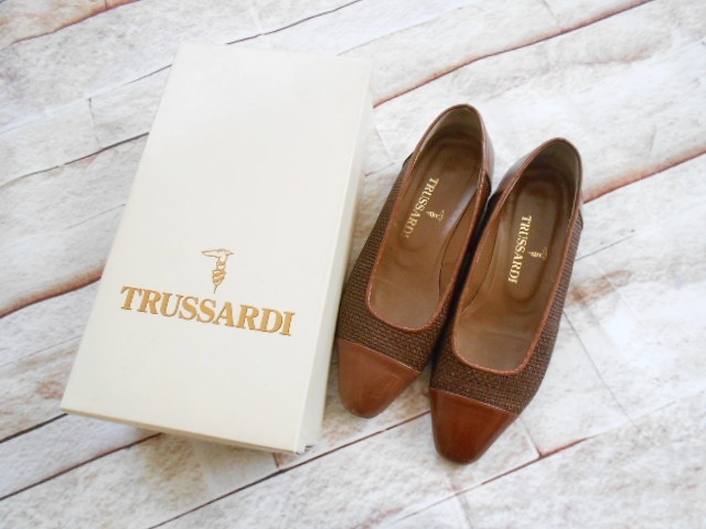 SH10★TRUSSARDI /トラサルディ【23㎝ 】かご網デザインのパンプス 茶色