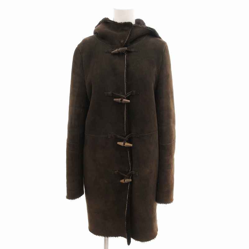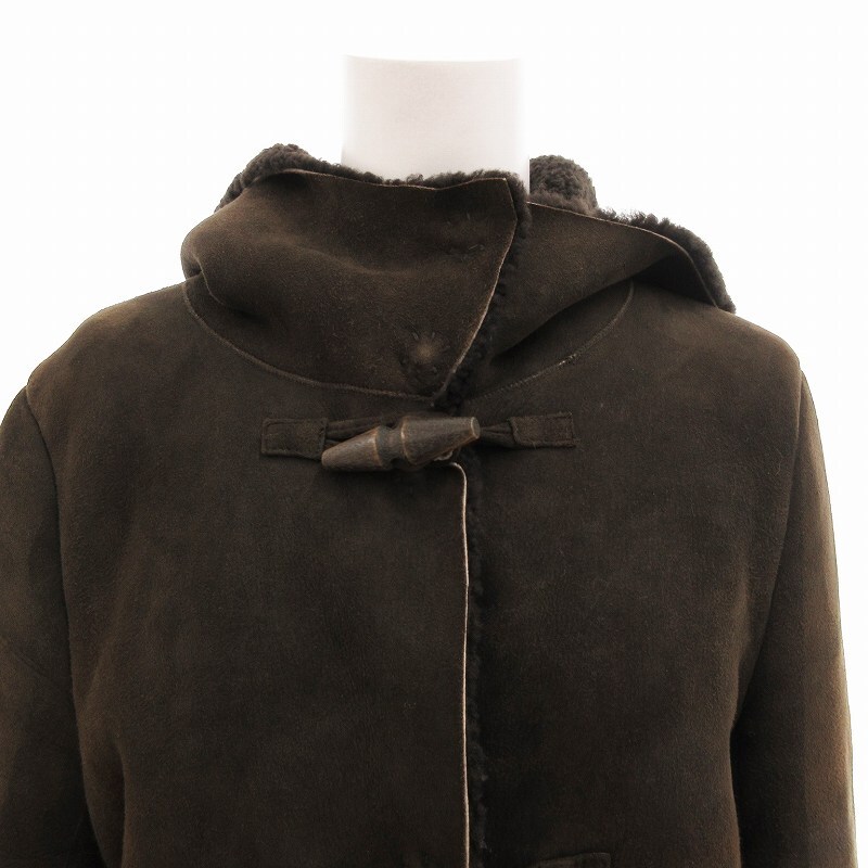 セオリー Theory ダッフルコート ジャケット トグルボタン フード ムートン レザー ひざ丈 S 茶 ブラウン /FF ■GY18 レディース