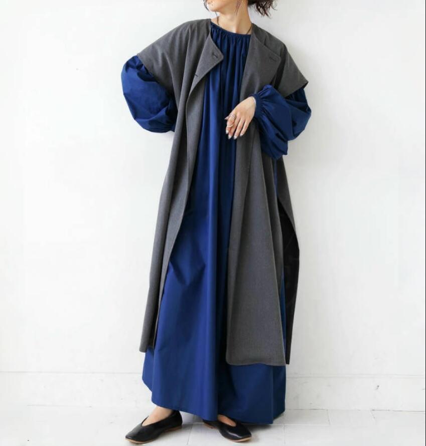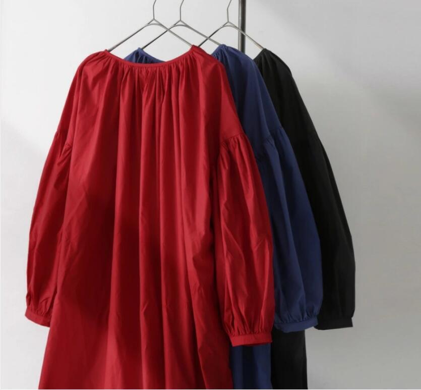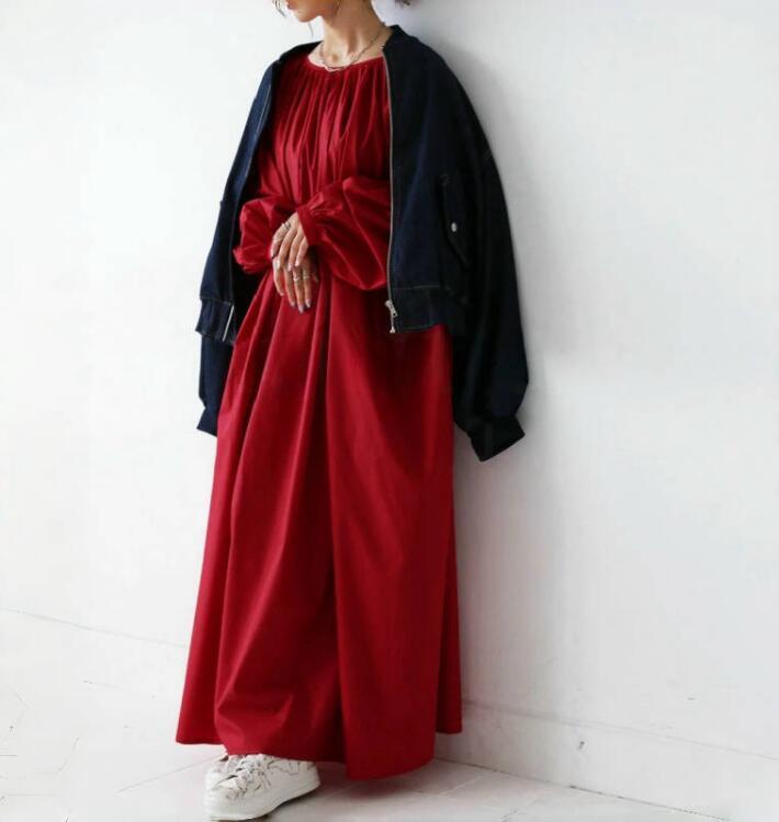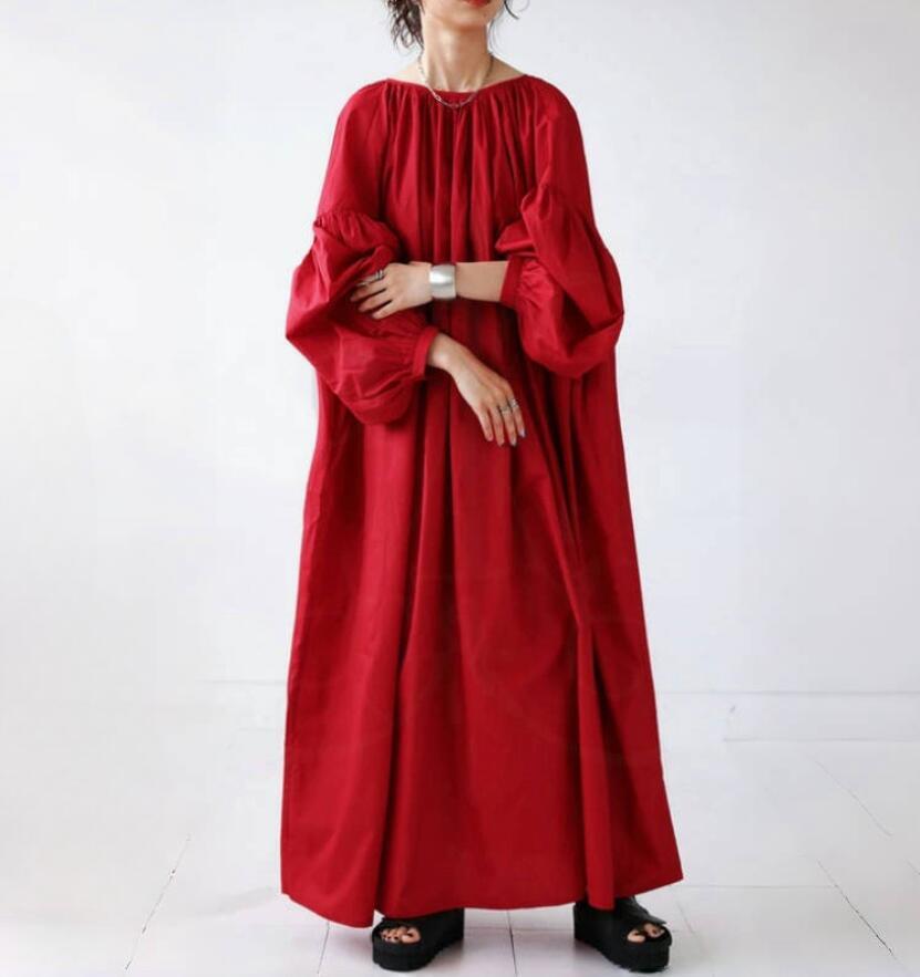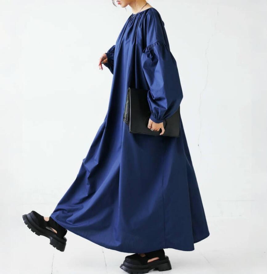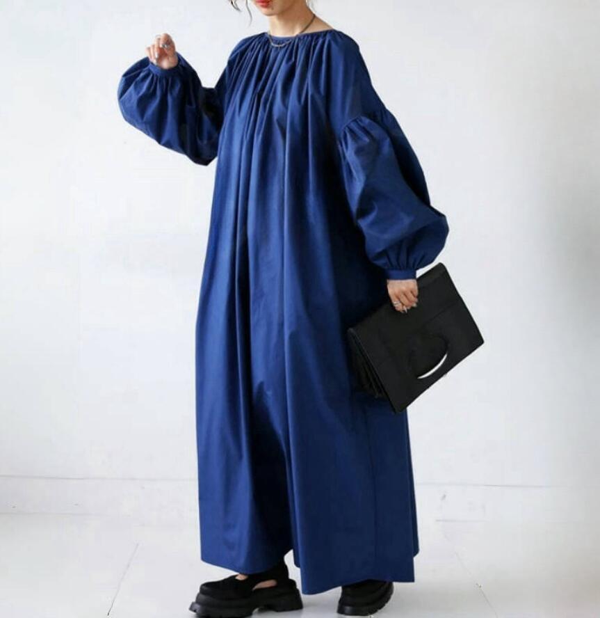 新作~大人気 ワンピース レディース ロングワンピース 長袖 無地 体型カバー ゆったり 大きいサイズ お洒落 マキシワンピース~ブルー