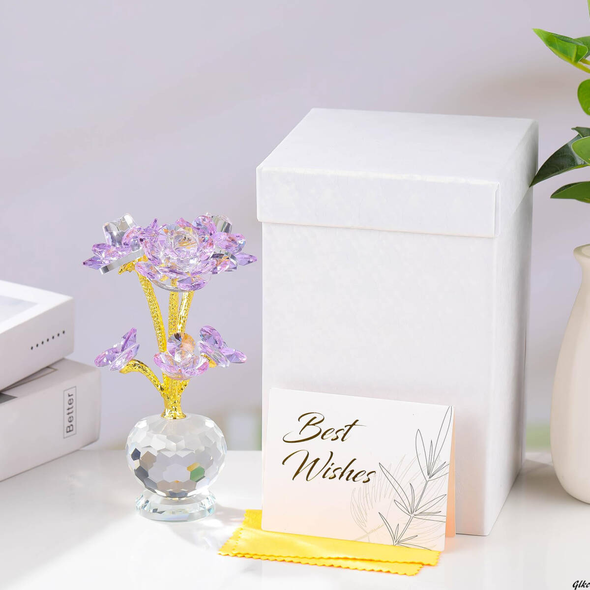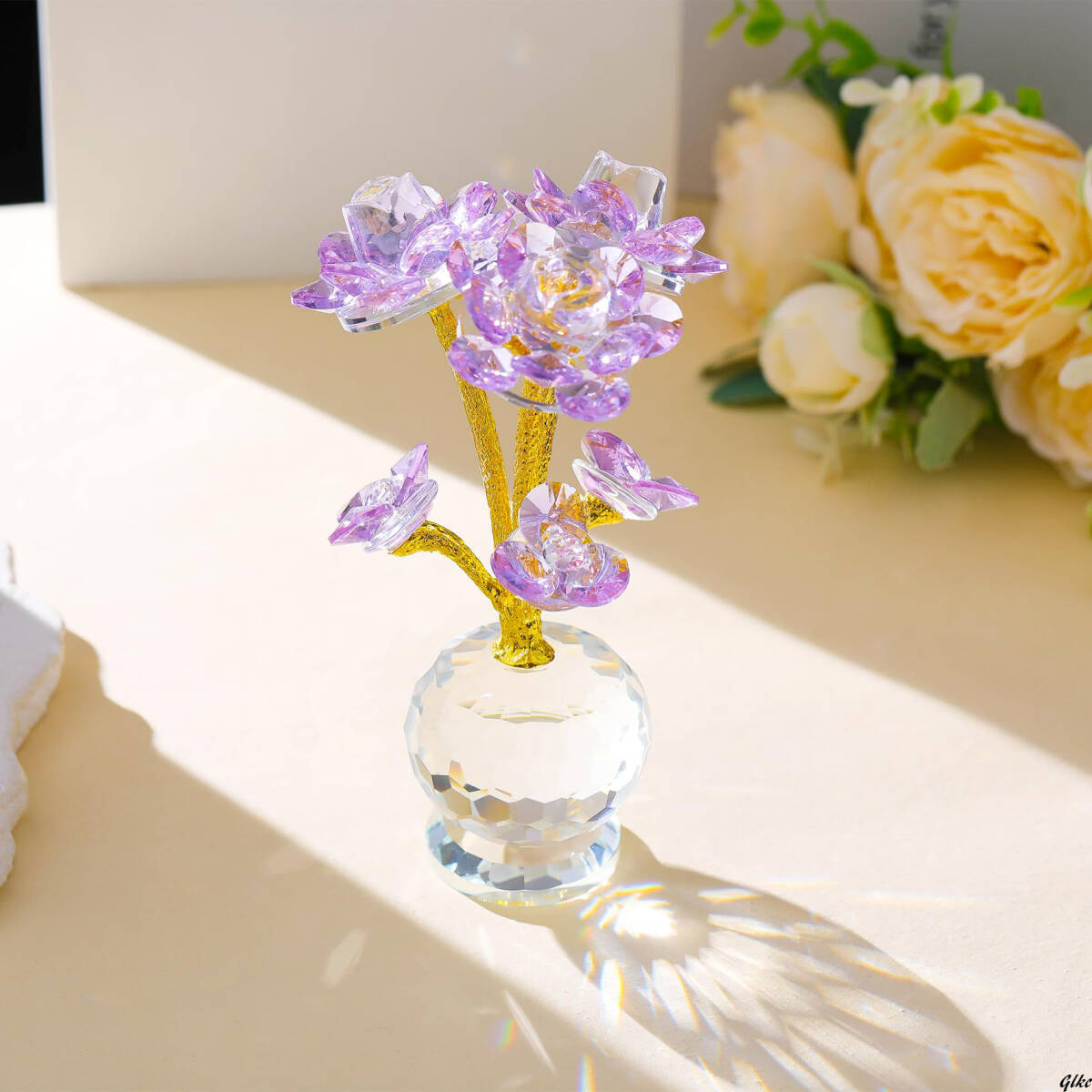【家庭やオフィスにぴったりな美しいホームデコレーション】クリスタルローズ 色褪せない 金色の金属製の茎 ギフトボックス付き パープル