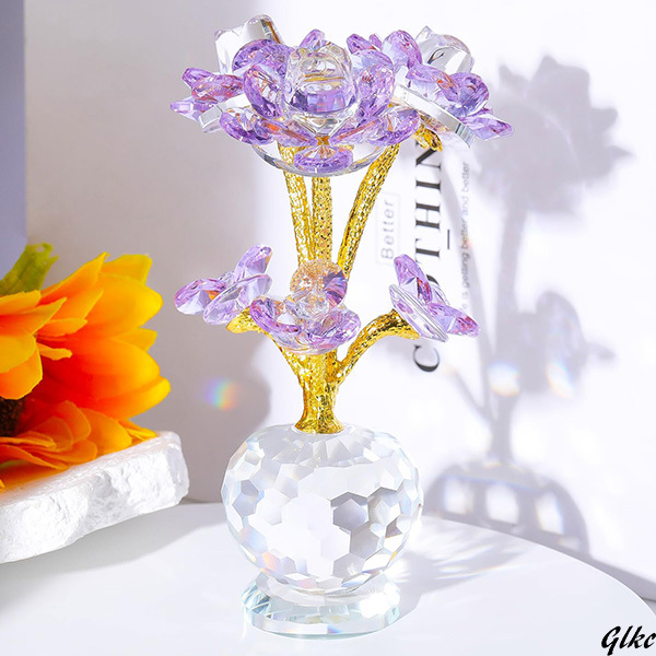高品質なK9クリスタルで作られたバラの花は、色褪せることなく、どんな場所でも美しく輝き続けます。