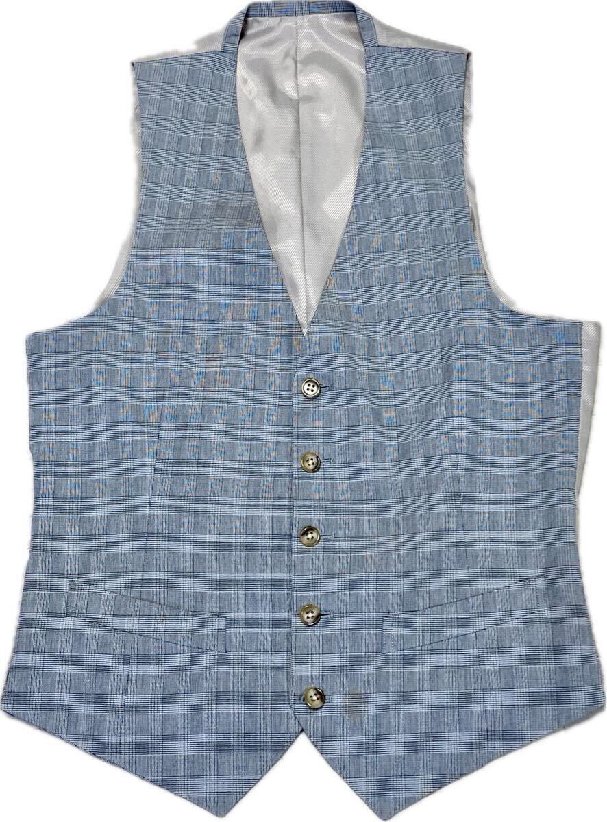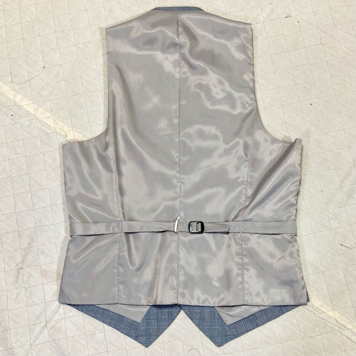 ■V開き、5ボタン、フロント切りポケット2、バックベルト付きのベストジレです。肌寒いときのジャケット下にいかがでしょうか?