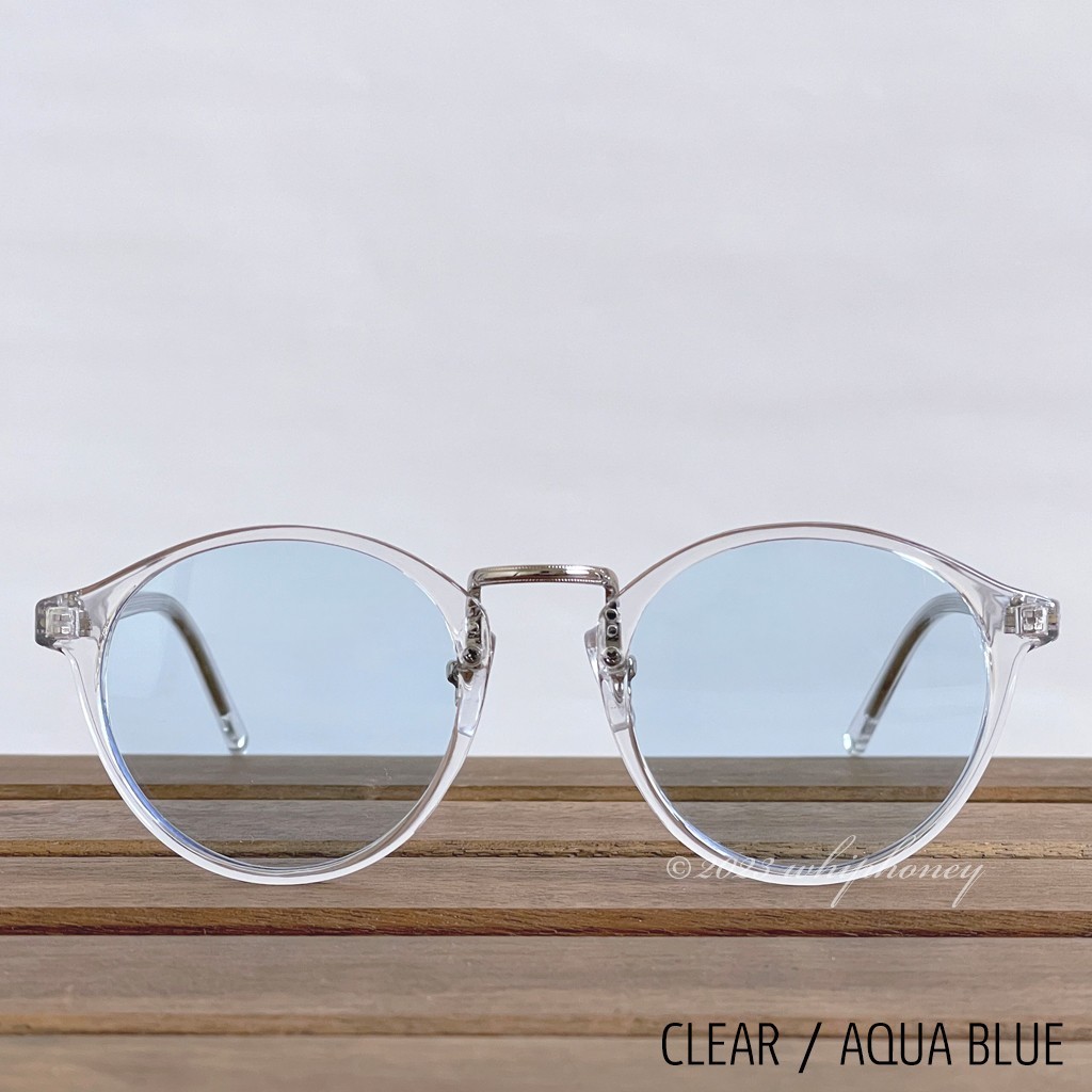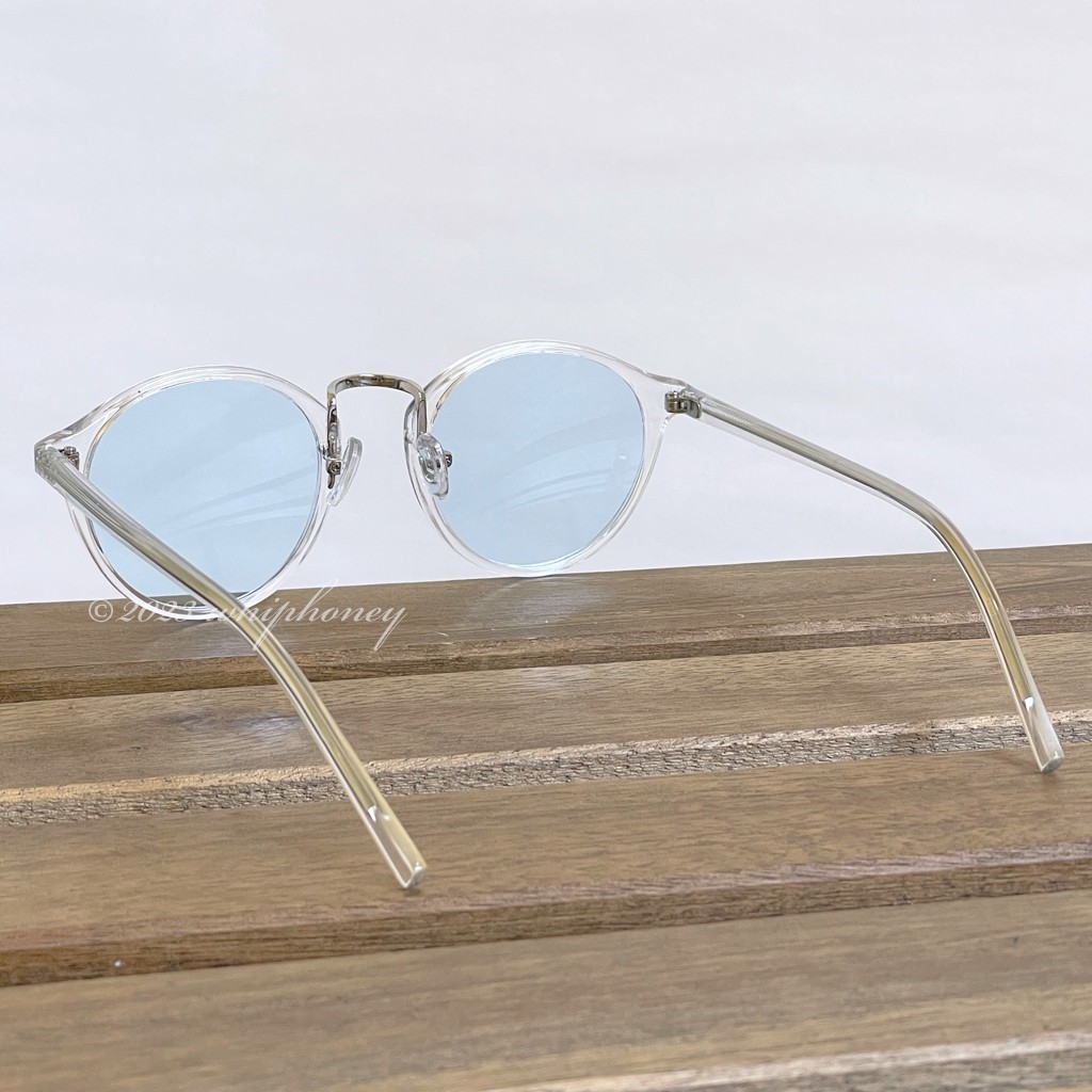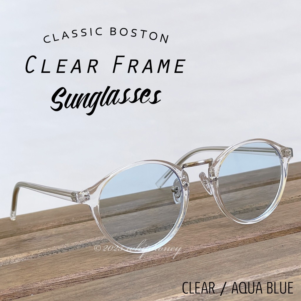 ラウンドボストン クリアフレーム ライト アクアブルーレンズ サングラス