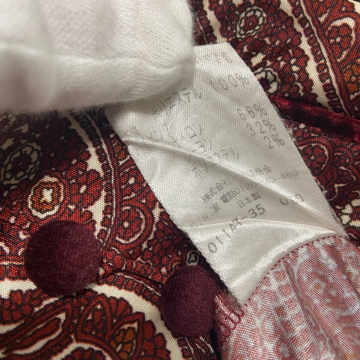 ストレッチ性を備えた上質生地。とろみ感のあるジャージー系で抜群の着心地。エレガントなペイズリー。ベルベットトリムやボタンも素敵。精密なディテールやフィニッシング、完璧なカッティングライン 。