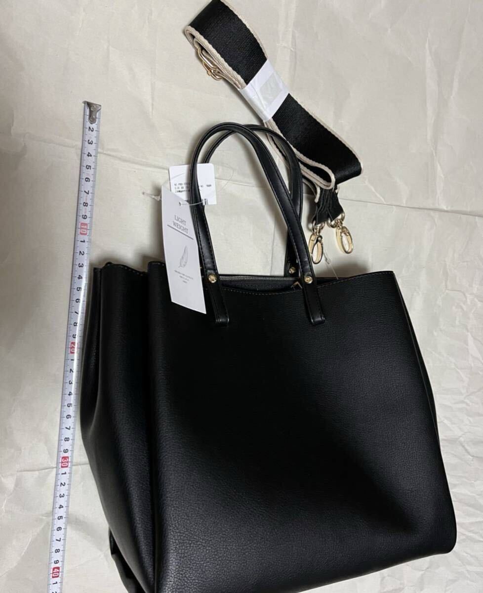 合成皮革 ショルダーバッグ トートバッグ ブラック 幅広ショルダー 軽い レディースバッグ 2way