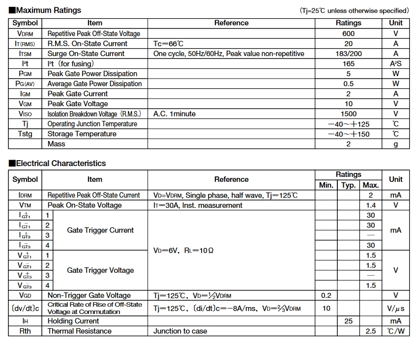 SanRex TMG20C60F トライアック (600V/20A) [2個組]【管理:KB520】