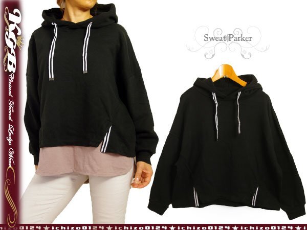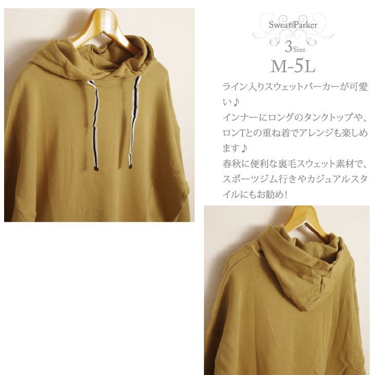 LL~3L パーカー ライン入り レディース スウェット 裏毛 長袖 春秋 ブラック 新品