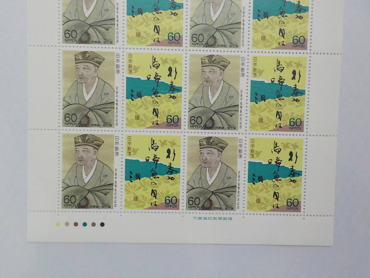 奥の細道シリーズ 1987年 行春や鳥啼魚の目は泪 / 60円切手シート 未使用