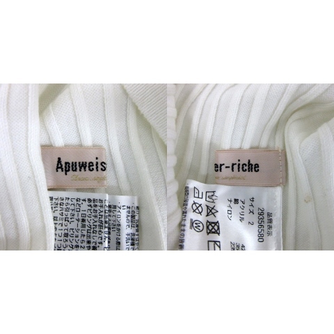 アプワイザーリッシェ Apuweiser-riche リブニット カットソー ノースリーブ クルーネック 無地 2 白 ホワイト /YS38 レディース