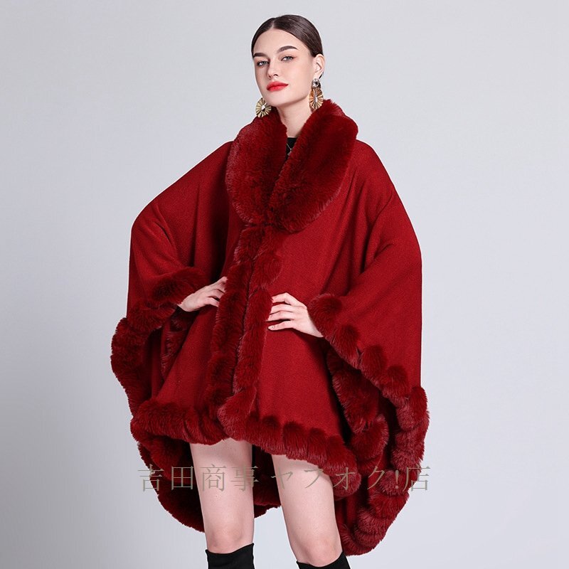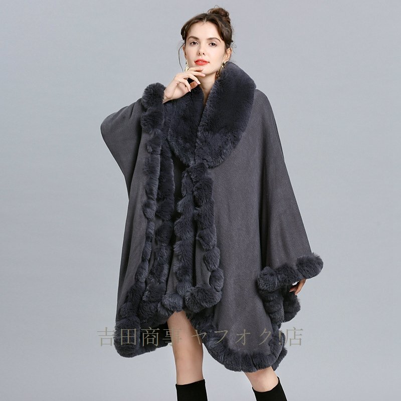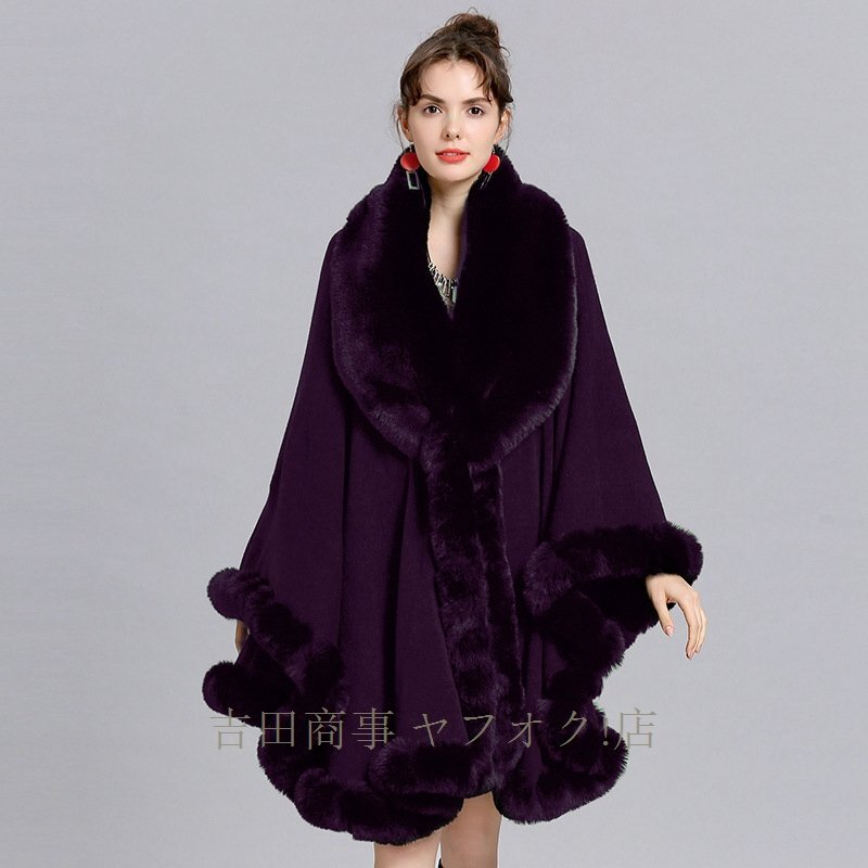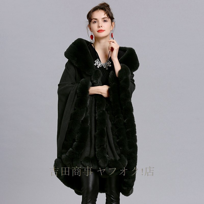 ☆新品ジャケット ポンチョ ポンチョコート レディースマントコート フェイクファーケープコート 深緑