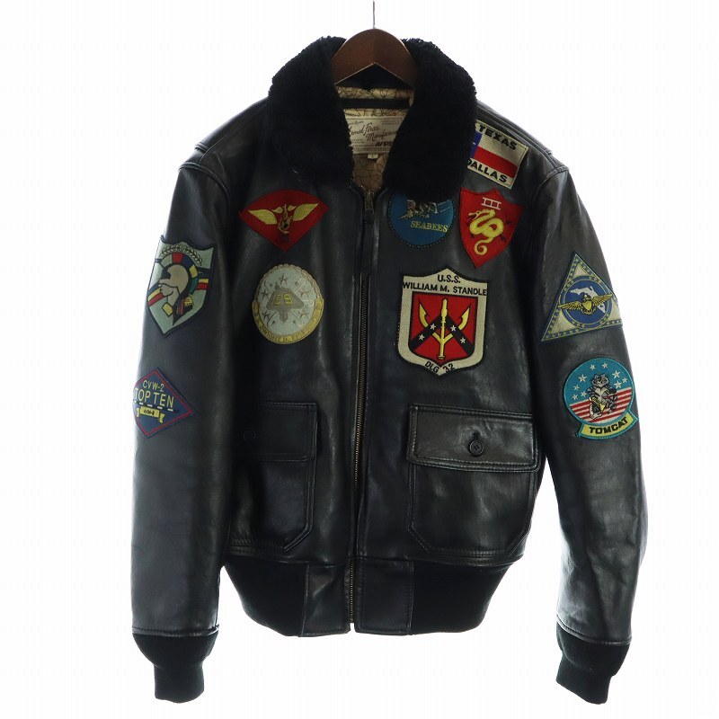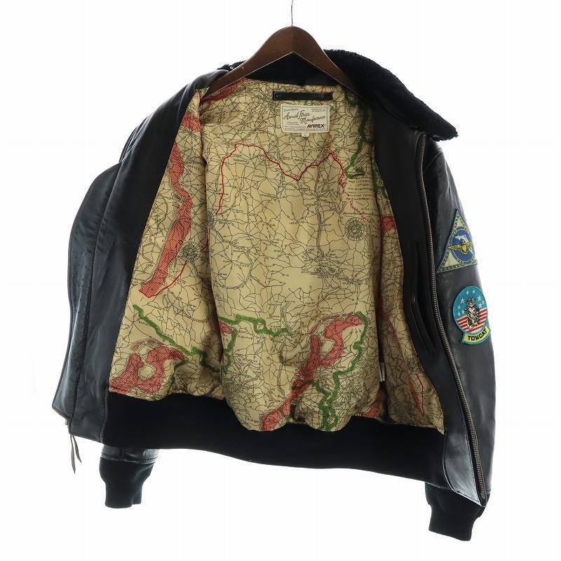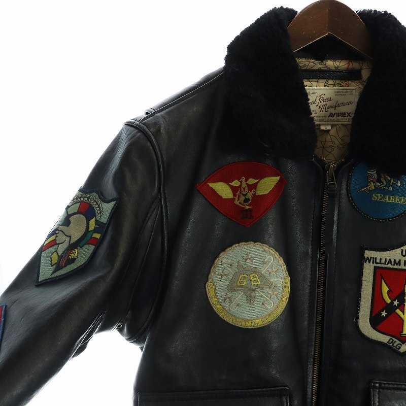 アヴィレックス AVIREX G-1 フライトジャケット トップガン レザー 羊革 ワッペン 長袖 ジップアップ L 黒 ブラック ■GY12 /MQ メンズ