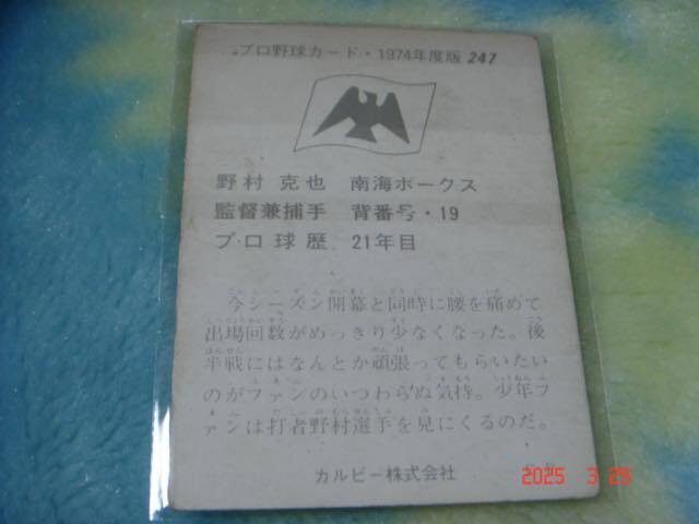 * 激レア・ブロック カルビー74年 プロ野球カード NO.247 (野村/南海)  *
