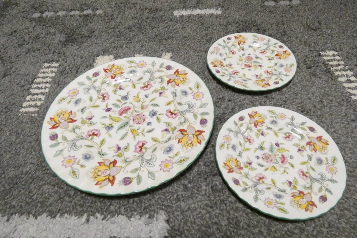 未使用 ☆ ミントン/MINTON ハドンホール プレート(ケーキ皿)大皿&小皿2枚セット 縁:グリーン ENGLAND製 お手軽配ゆうパック