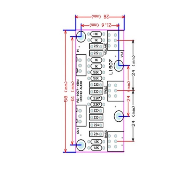 ステレオ トーン コントロール ボード コントローラー低音 高音 ボリューム 調整 調節 トレブル オーディオ アンプ自作(RCA AUX、