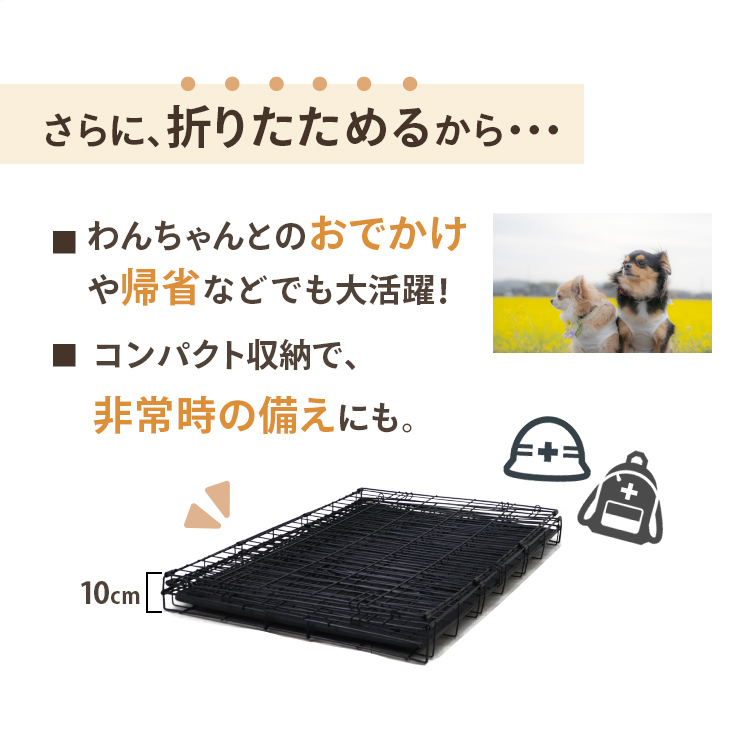 お留守番や、しつけに最適! 移動に便利な折りたたみ式ペットケージ。 本体はネジ等を一切使用せず、パタパタっと開くだけの簡単組み立て式です。 折りたたむことができるので、使わない時の収納や移動する時もラクラク! 日頃からケージを自宅で使用しワンちゃんも使い慣れることで、 お出かけ先でも安心して休むことができ、ストレスの軽減にもつながります。 留守中やワンちゃんから目を離す時、 いたずらによる怪我や事故の防止にも役立ちますし、緊急時の避難用にも重宝します。 ■商品コード:PT0017C ■商品仕様 サイズ(約) 使用時:93×57.5×64.5cm 折り畳み時:93×58×10cm 重量(約):8.2kg 材質:スチール、ABS樹脂 参考サイズ:中型犬、大型犬 ■注意事項 ・ご注文時サイズは必ずご確認ください。 ・参考サイズはあくまで目安です。 ・本製品は屋内専用です。屋外で使用すると錆や変色の原因となります。 ・サイズ間違い、イメージとの違いによる返品、交換は一切行っておりません。 ・海外製品で、簡易梱包での輸入のため風防に擦れや多少の小キズなどがある場合がございますが、 商品自体には問題ありませんのでご了承下さい。 ・仕様・デザインは改良のため予告なく変更することがあります。 ■保障期間 7日間 ※商品到着後7日以内の初期不良・破損のみご対応させていただきます。 【新品未使用品です】 |