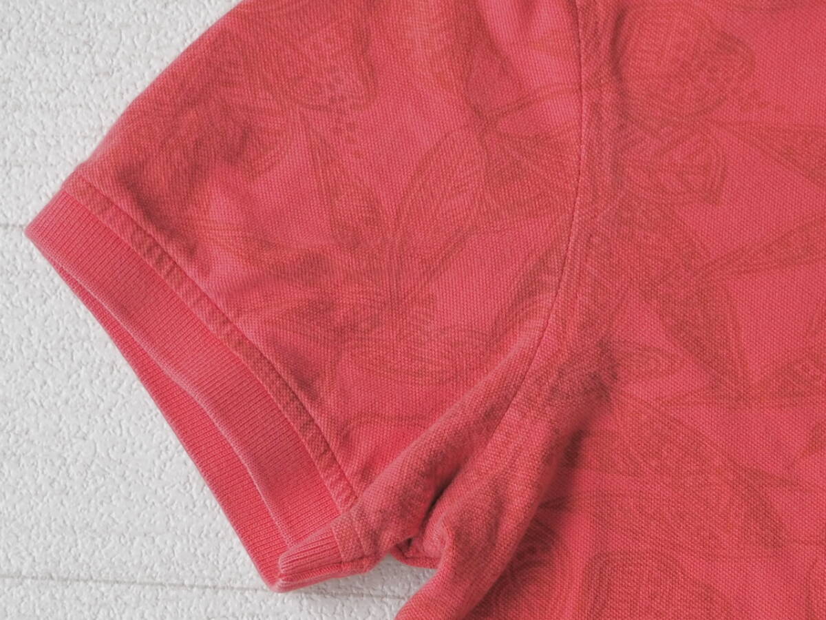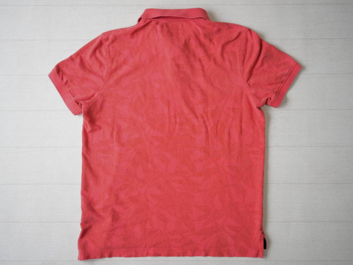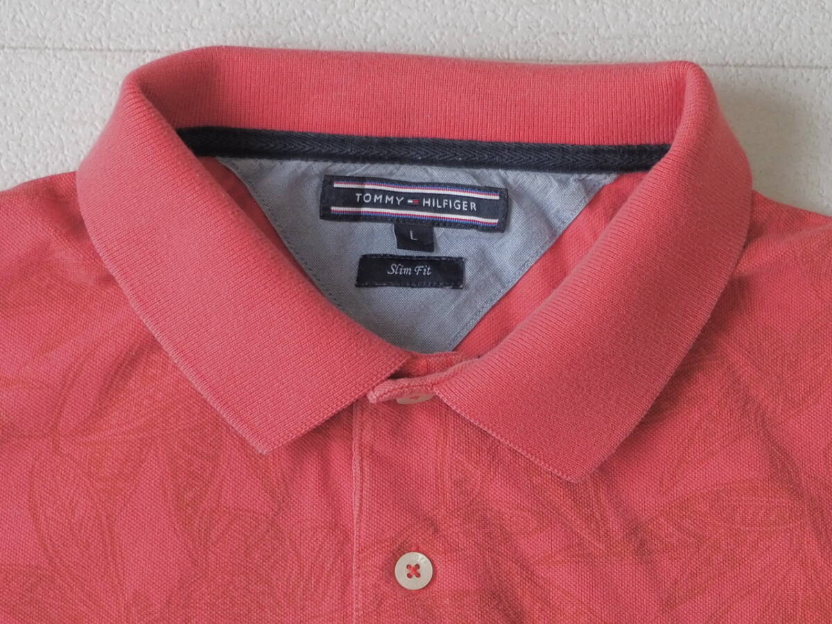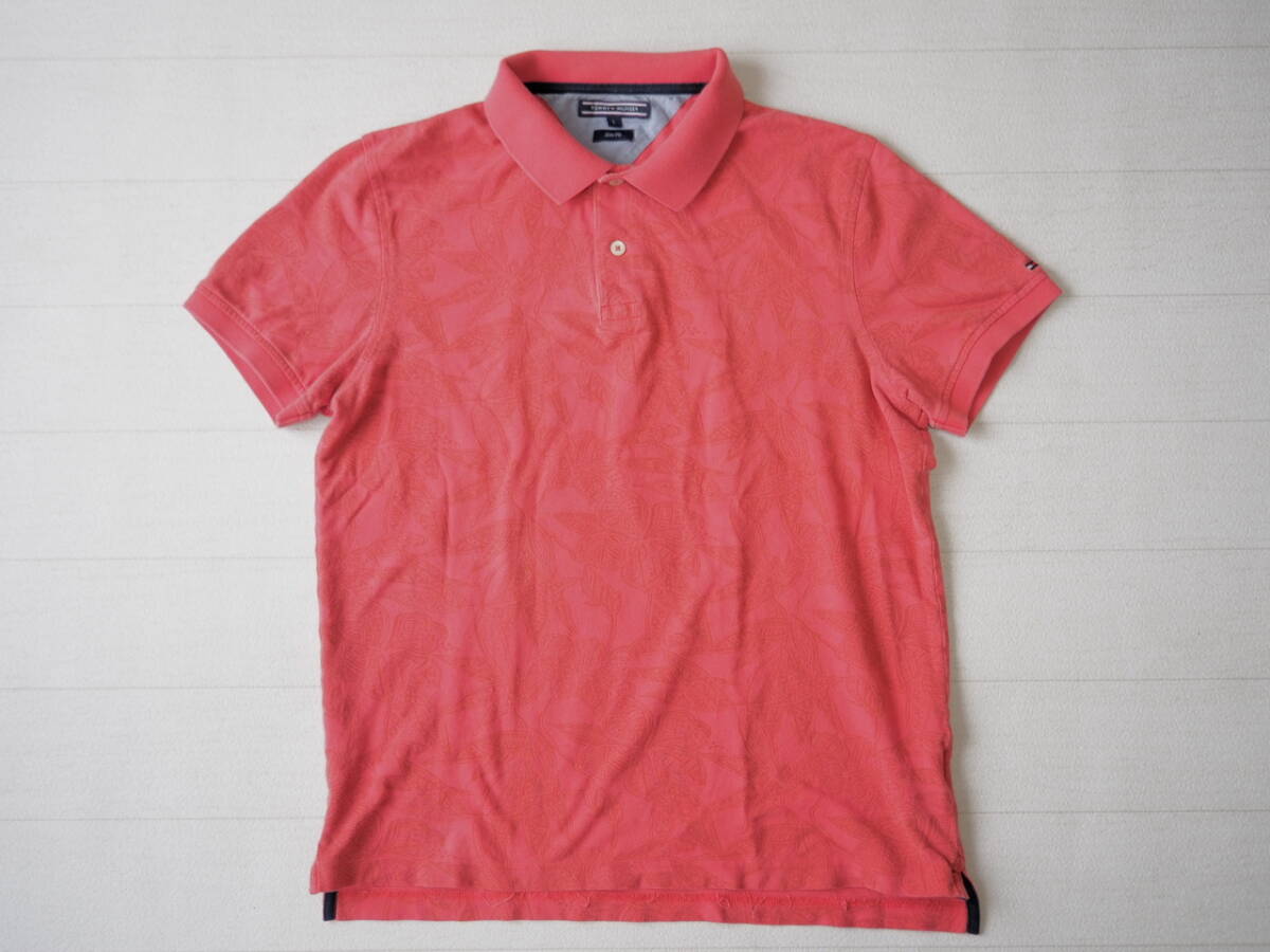 TOMMY HILFIGER トミーヒルフィガー 古着 半袖 総柄 スリムフィット ポロシャツ メンズ L レッド系 トップス 中古