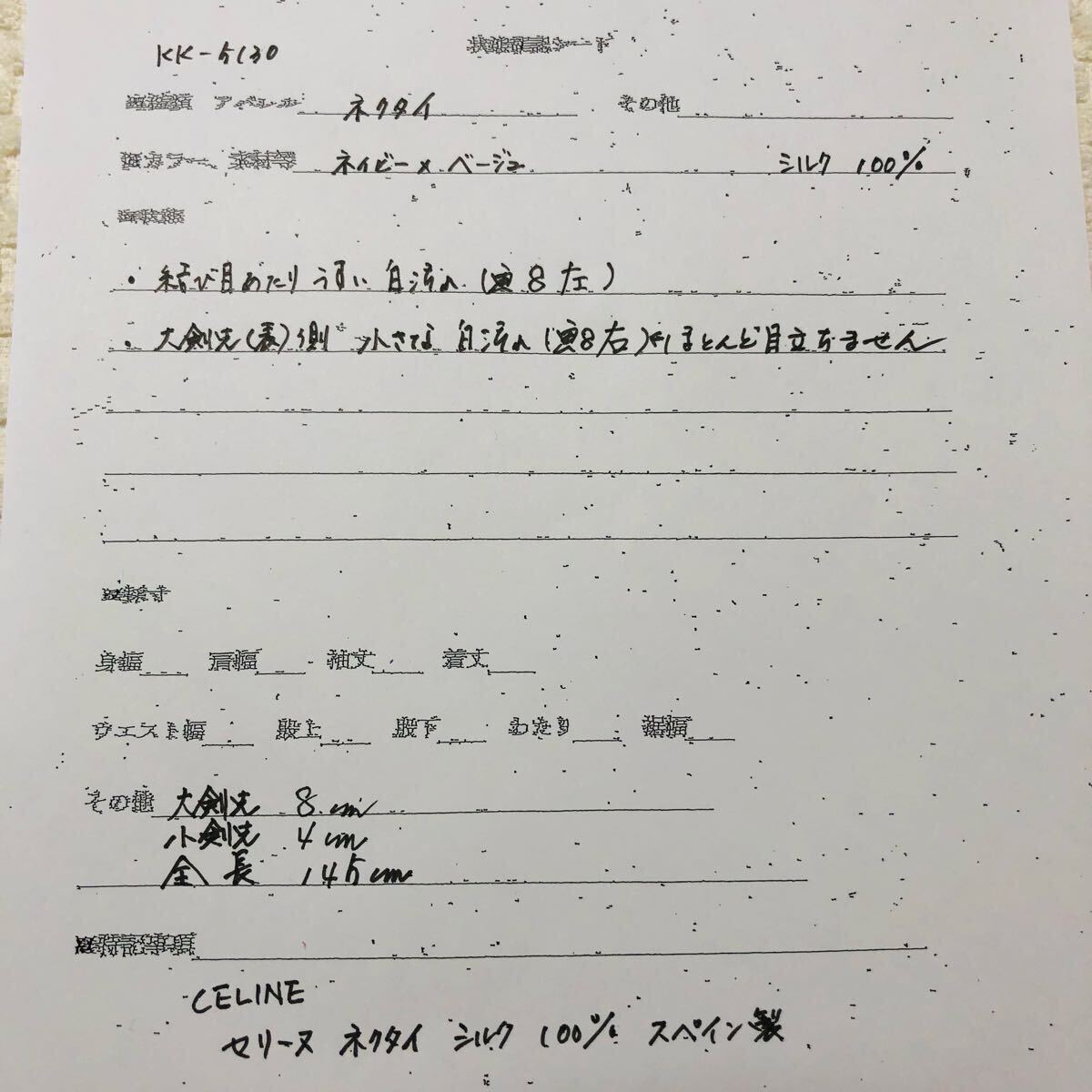 結び目あたりに薄い白汚れ、大剣先表側に目立ちにくい薄い白汚れ※写真8